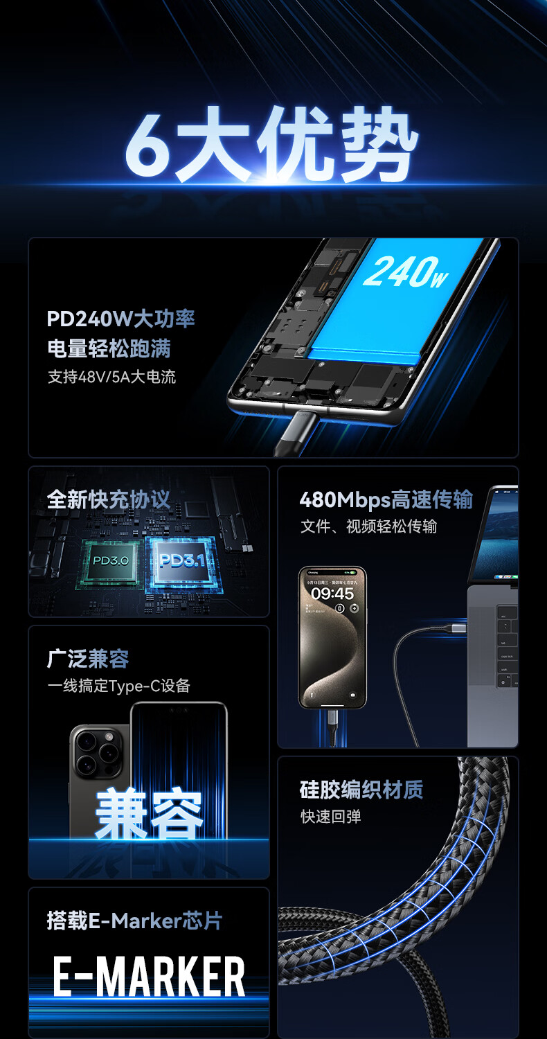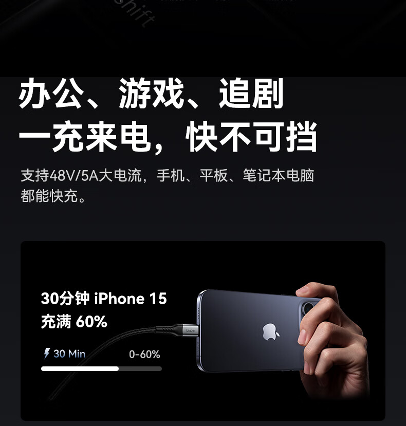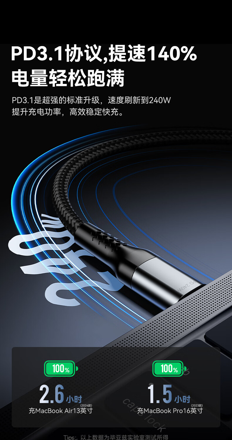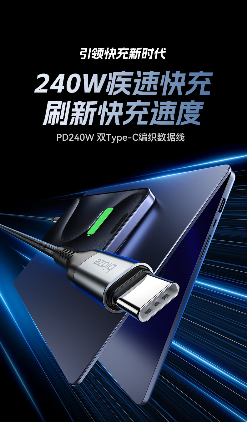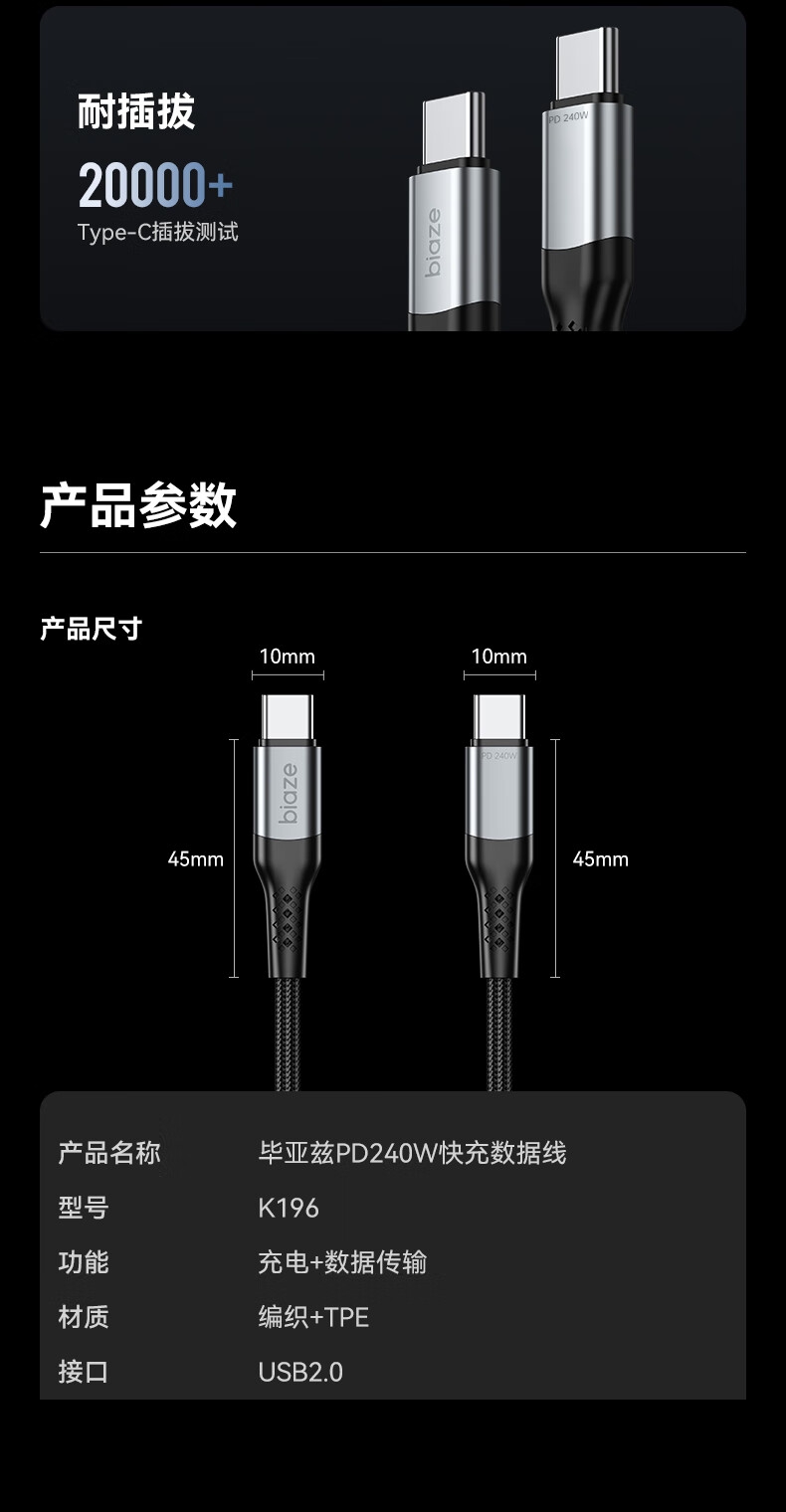 商品名称:BIAZE/毕亚兹毕亚兹PD240W快充数据线K196