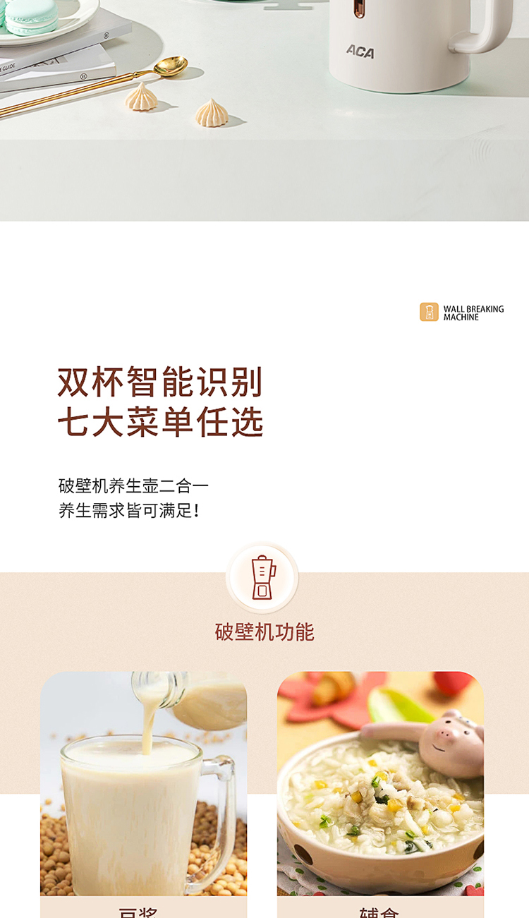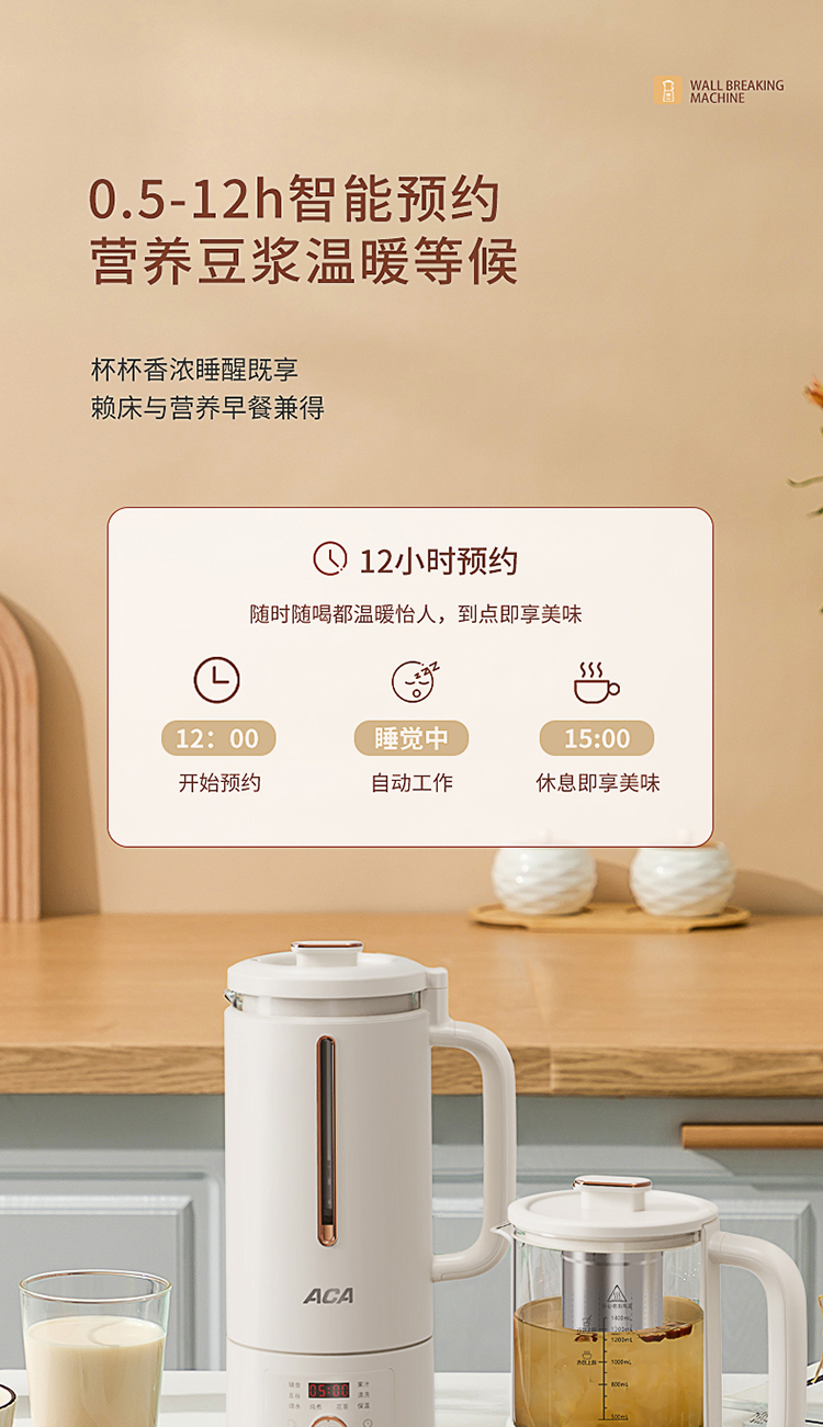 商品名称:ACA/北美电器600毫升智能破壁机ALY-G14PB12DR