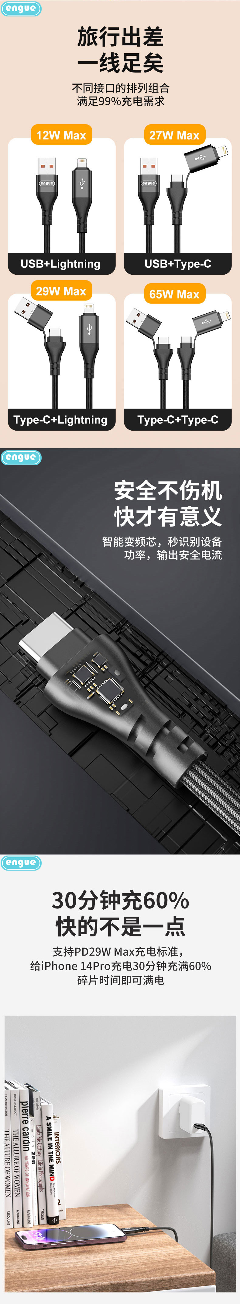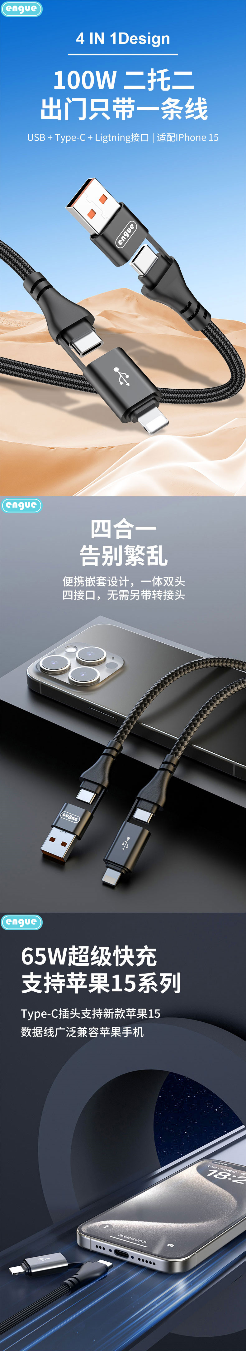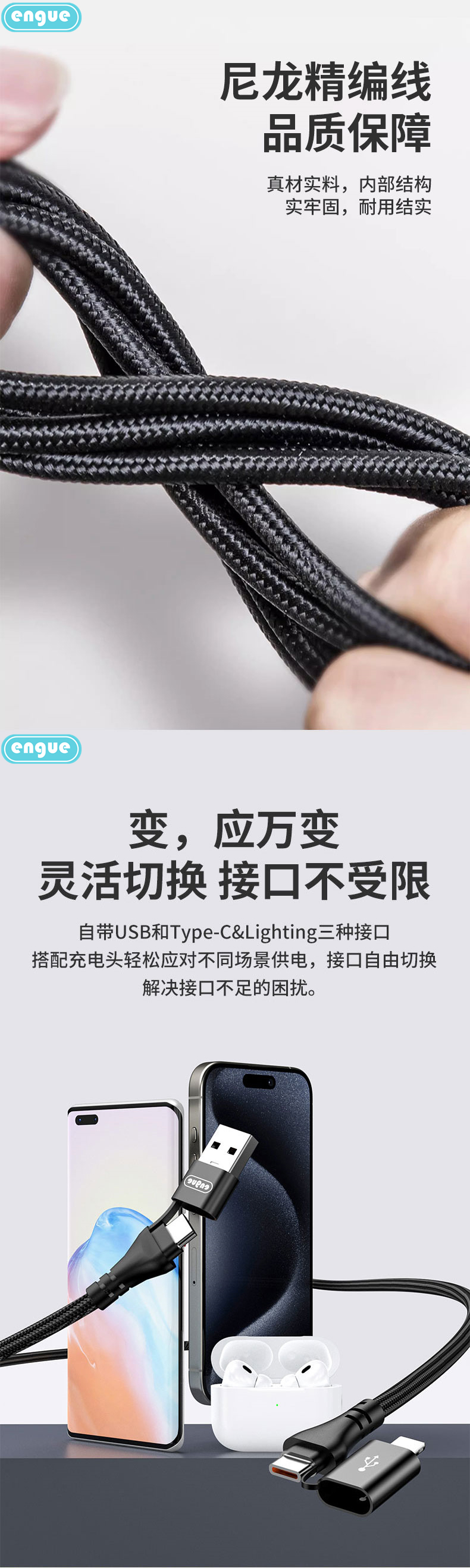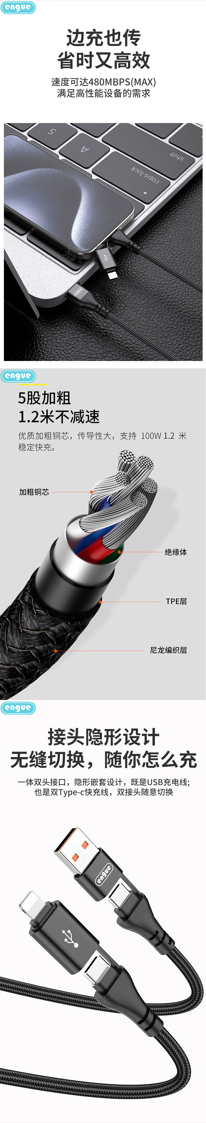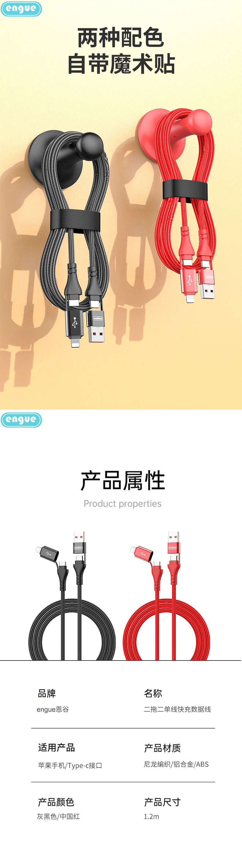 商品名称:ENGUE/恩谷二拖二单线快充数据线EG-916