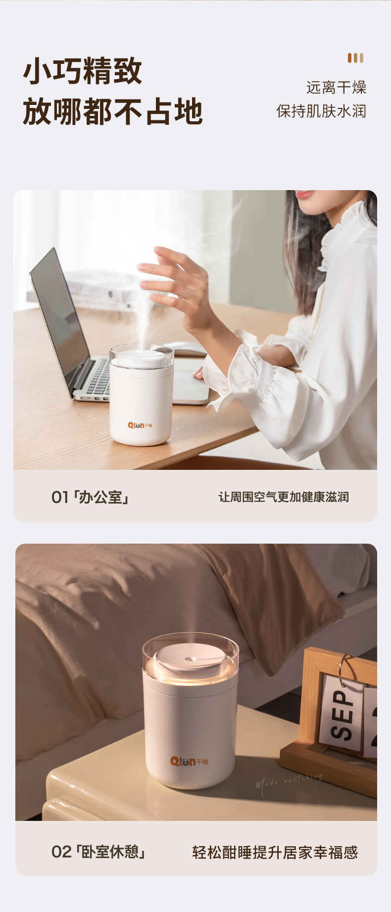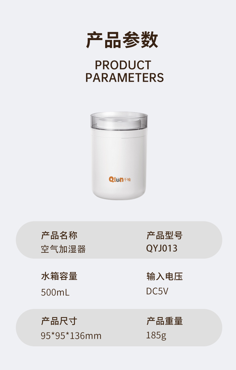 商品名称:【顺丰配送】千喻500毫升QLN氛围夜灯加湿器QYJ013