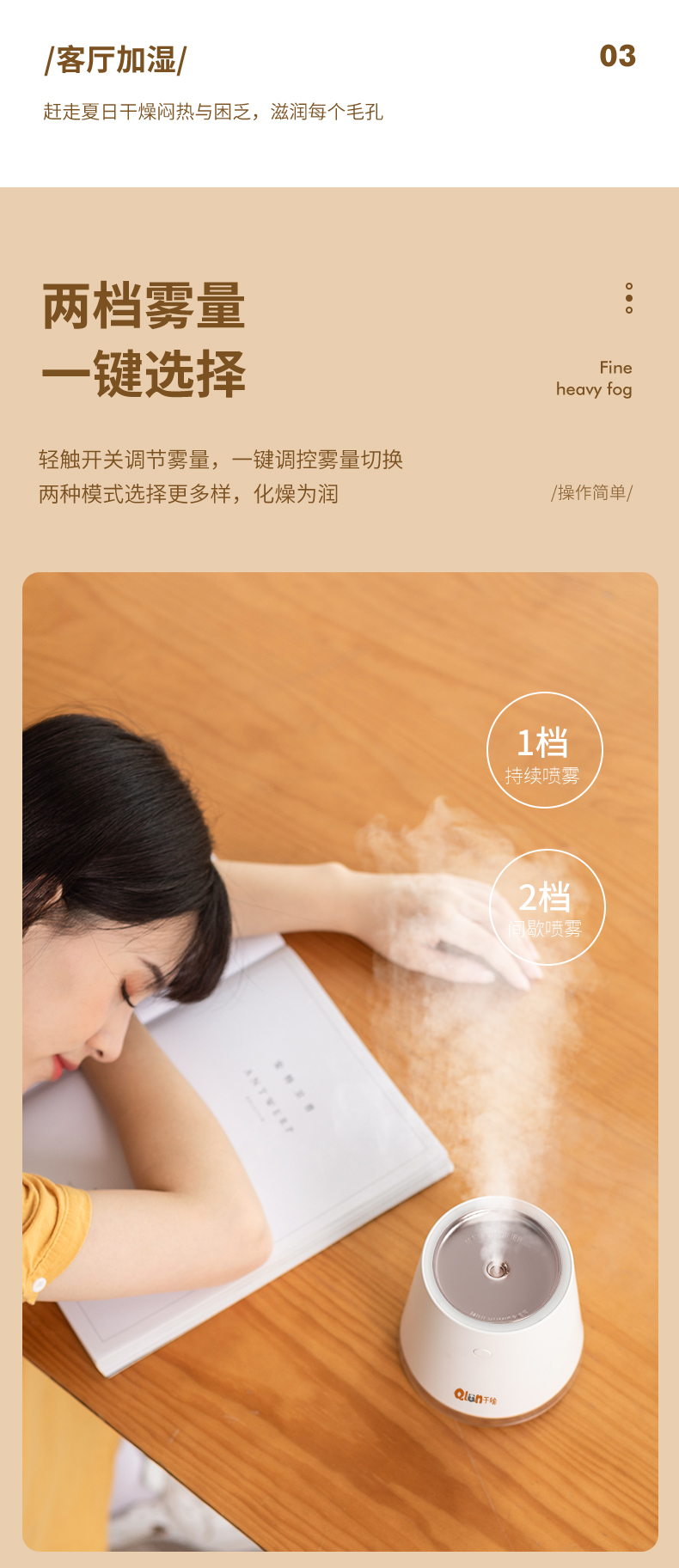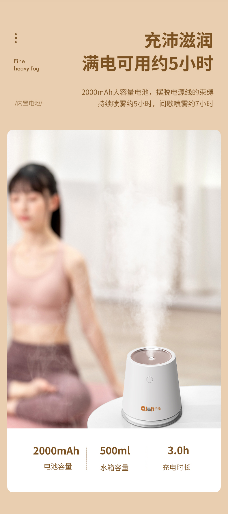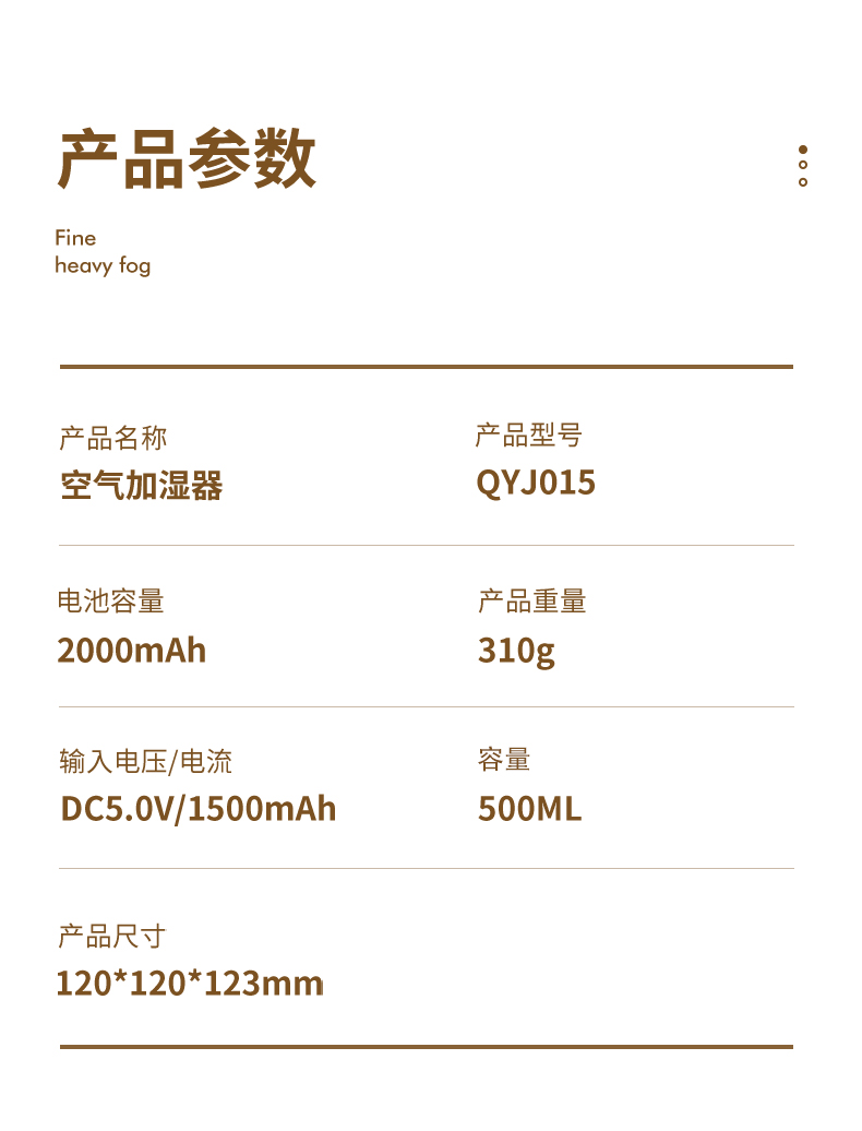 商品名称:【顺丰配送】千喻500毫升加湿器QYJ015