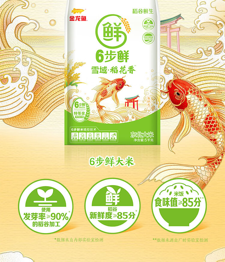 【京东/顺丰配送】金龙鱼稻谷鲜生六步鲜雪域稻花香东北大米5kg