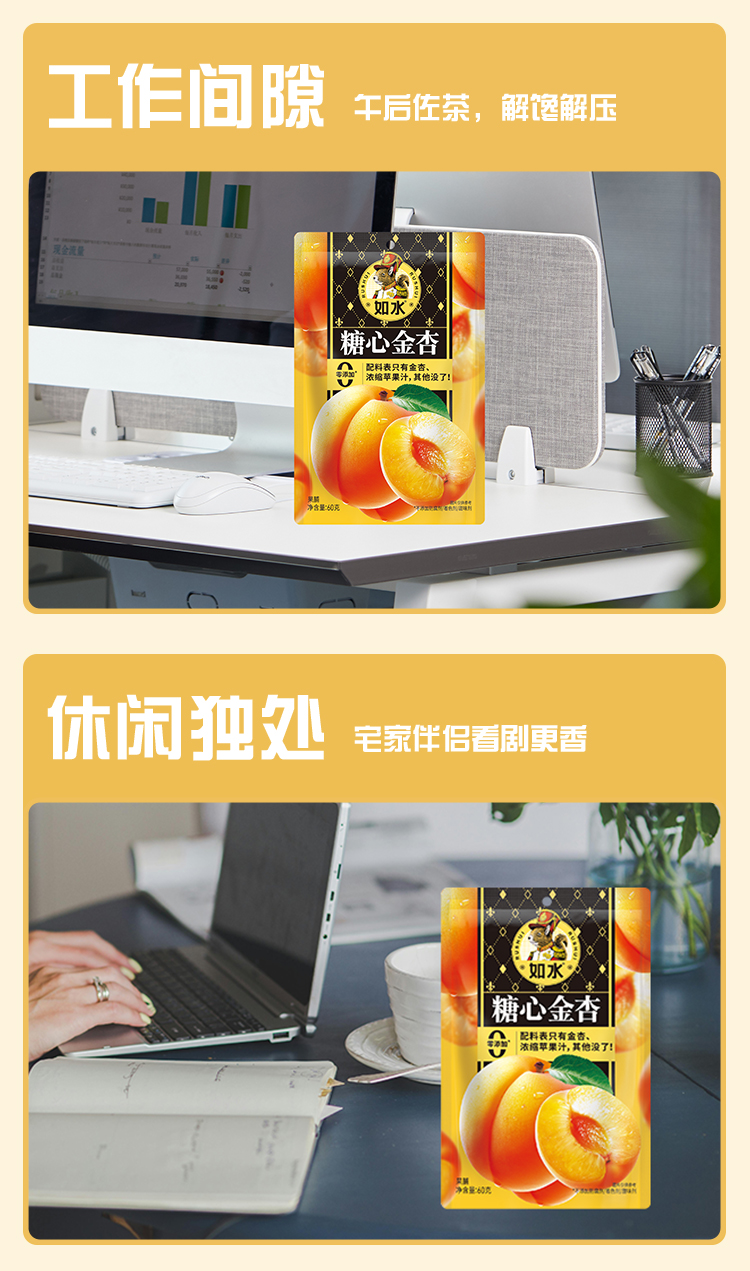 如水糖心金杏果脯60g*3袋