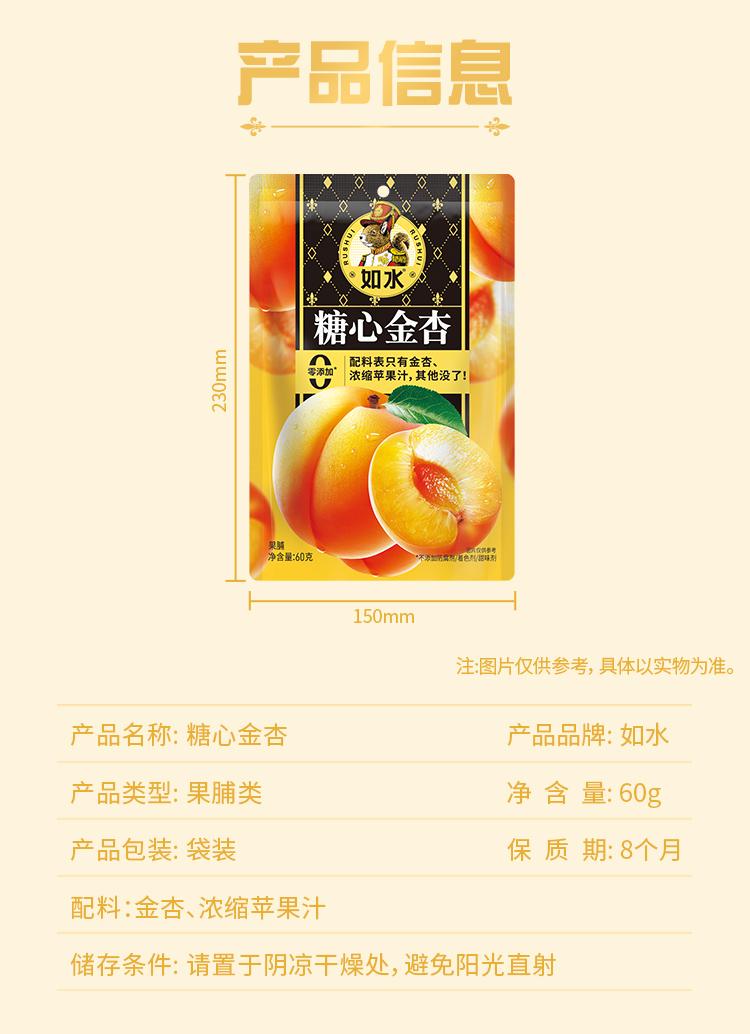 商品名称:如水糖心金杏果脯60g*3袋
