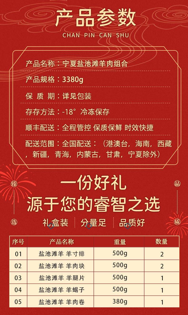 商品名称:【顺丰配送】宁鲜汇宁夏盐池滩羊肉礼盒3380g