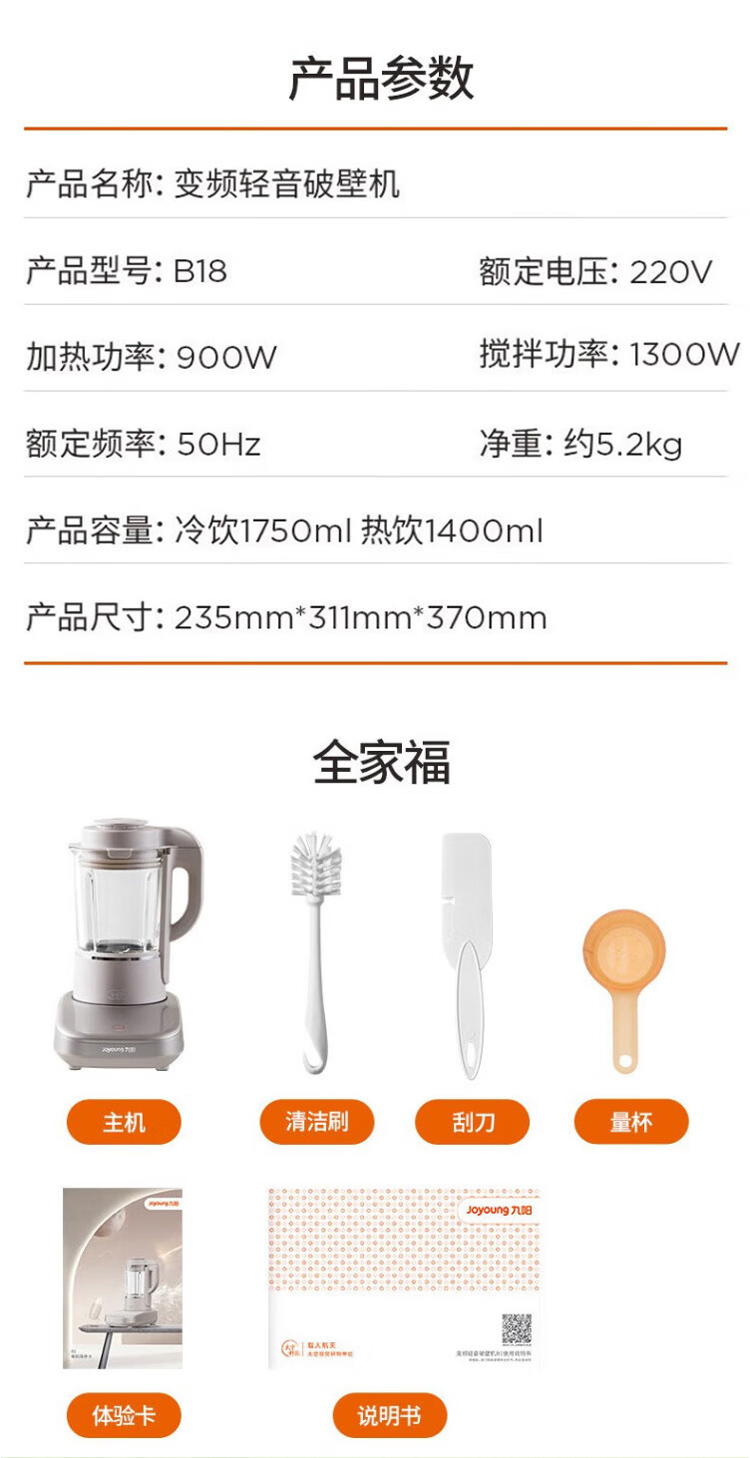 商品名称:【京东/顺丰/德邦配送】Joyoung/九阳1.75升变频低音破壁机B18