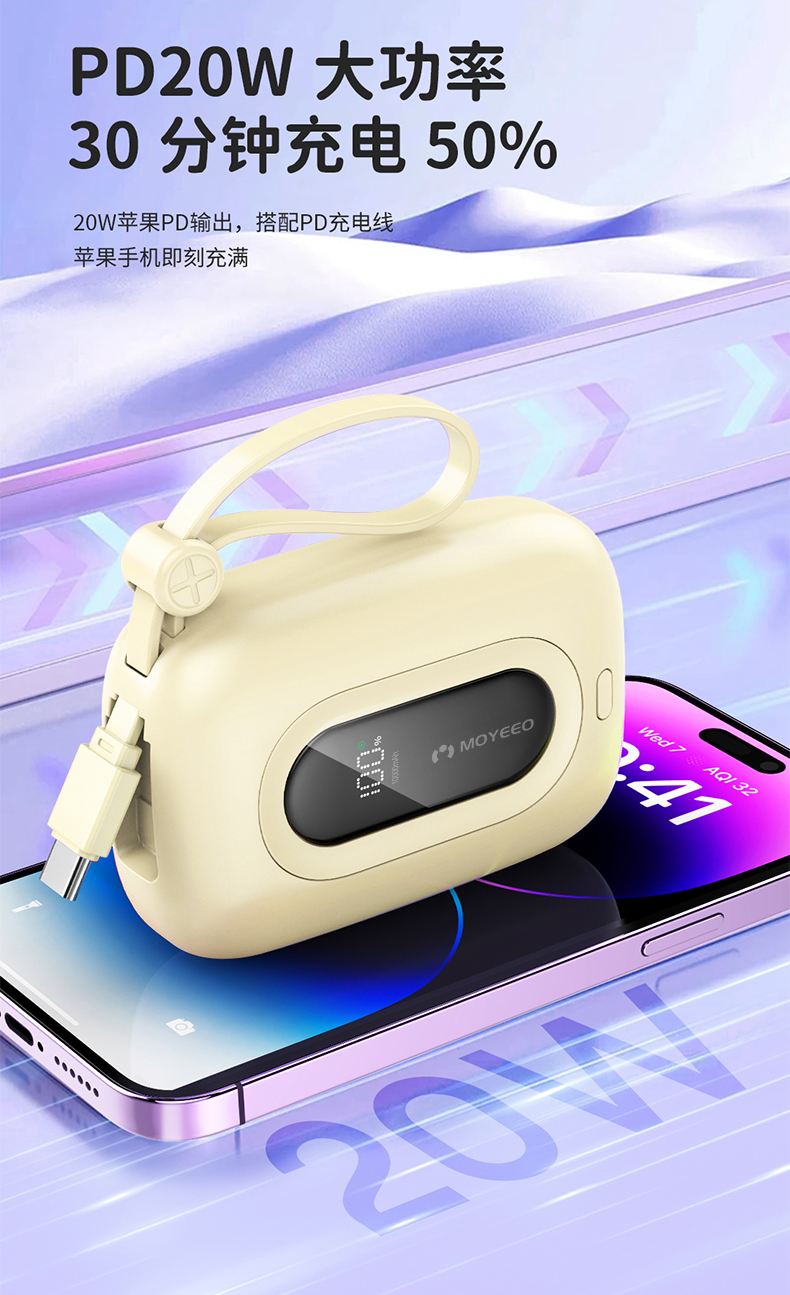 MOYEEO/魔元-22.5W快充迷你带线移动电源E05H(PL13