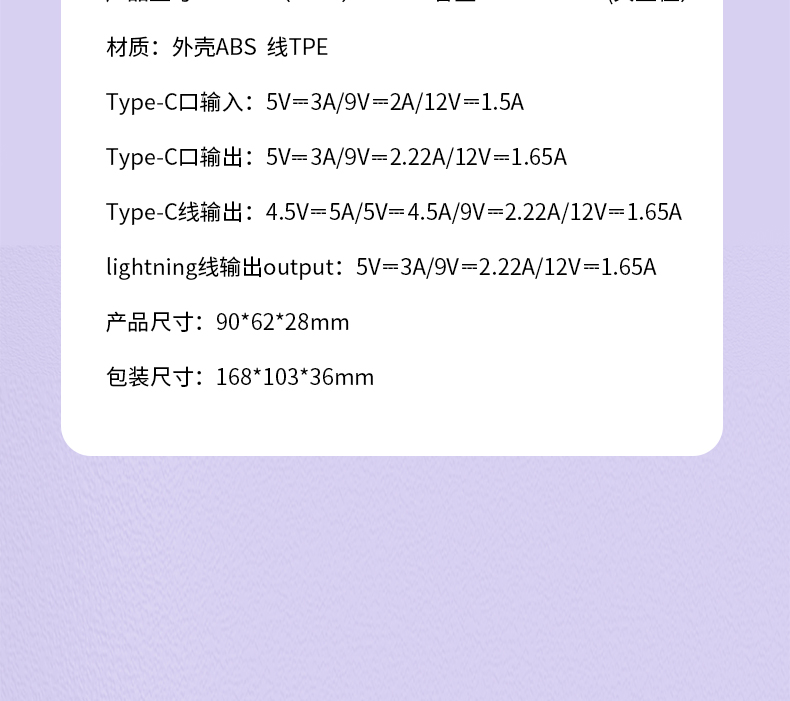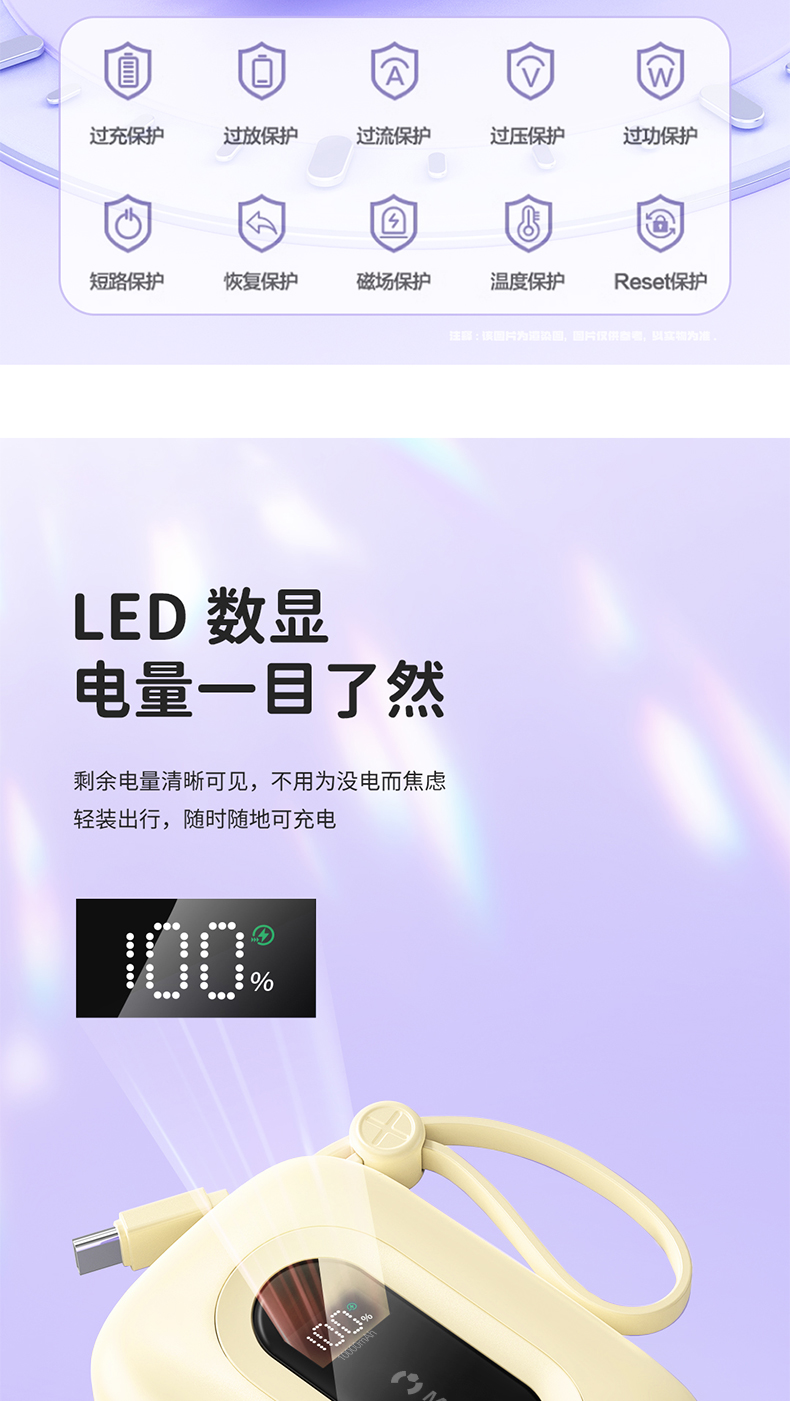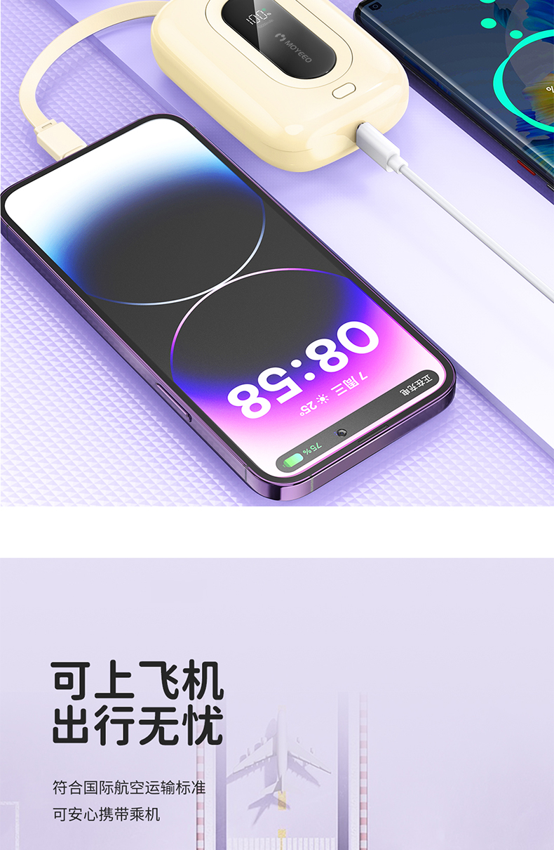 商品名称:MOYEEO/魔元-22.5W快充迷你带线移动电源E05H(PL13
