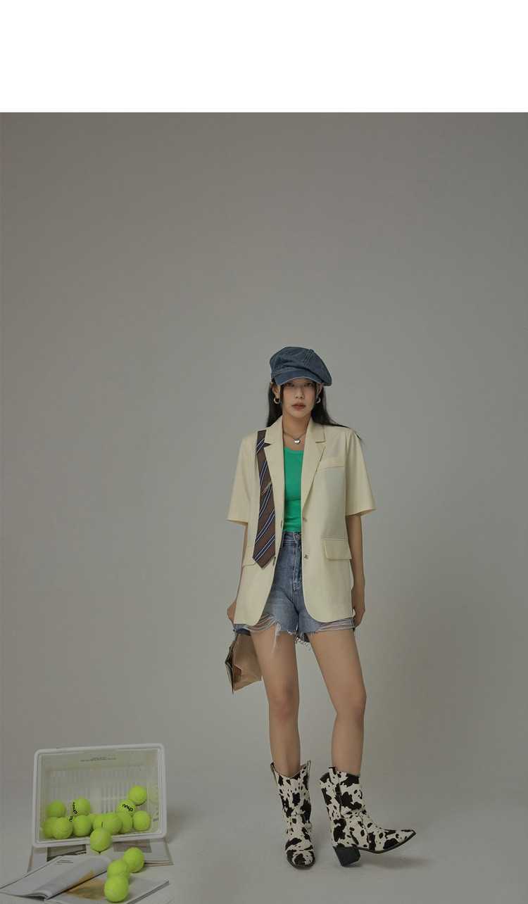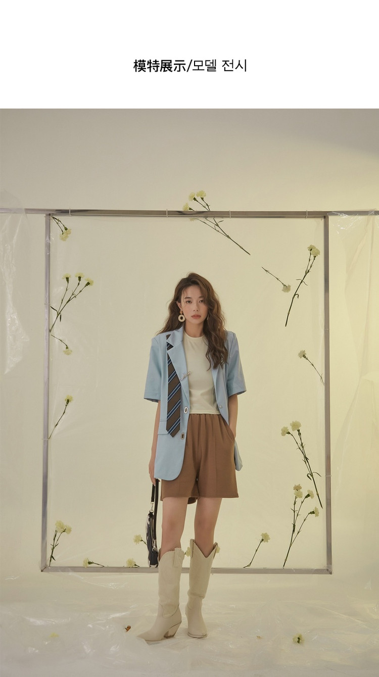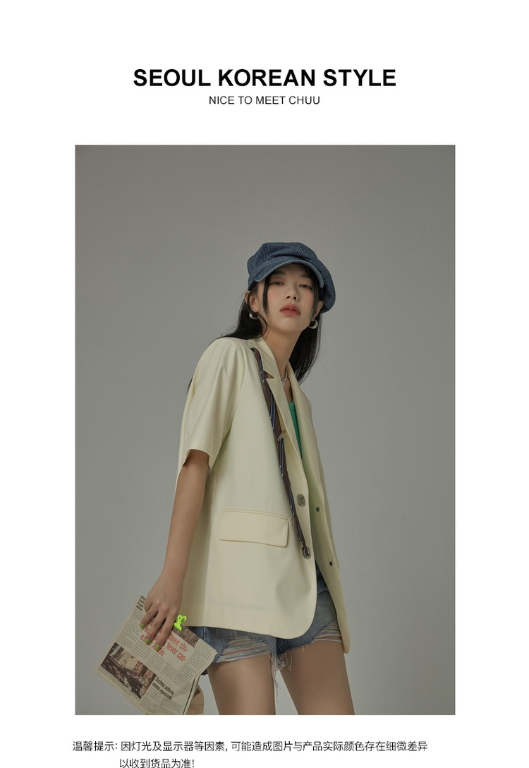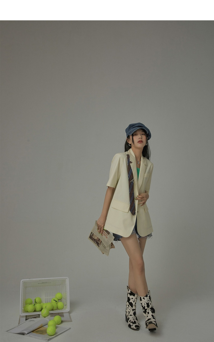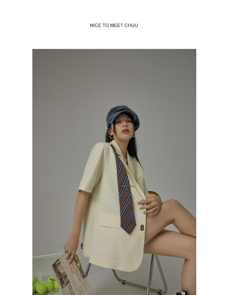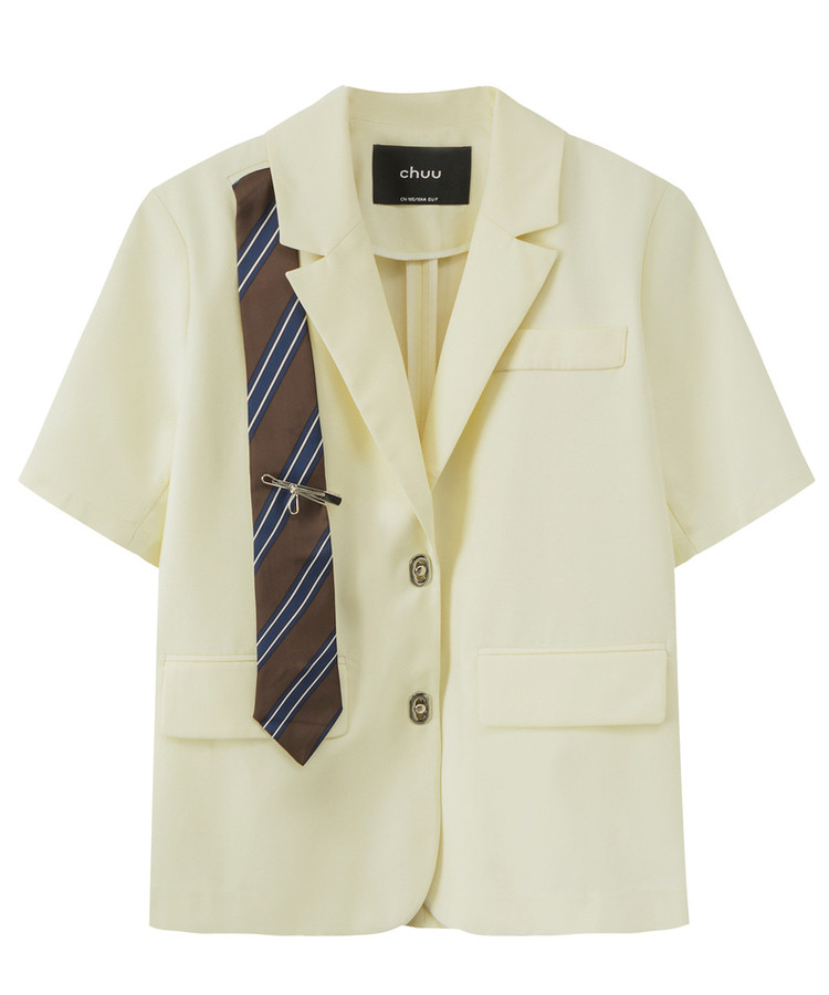 商品名称:拼色领带短袖西装女春夏设计感小众口袋百搭短袖外套 879379