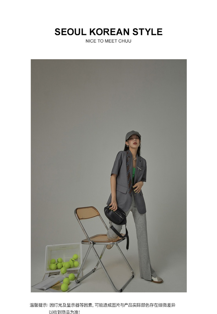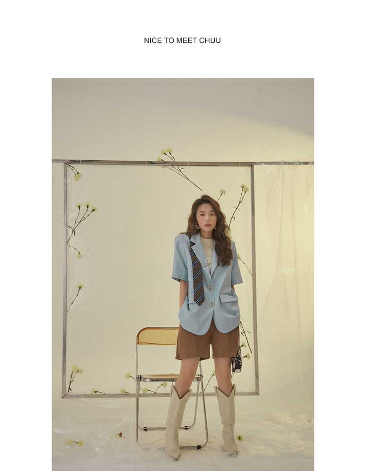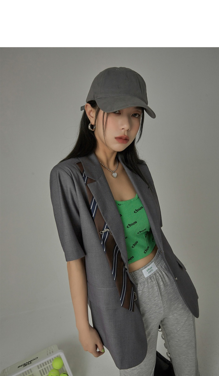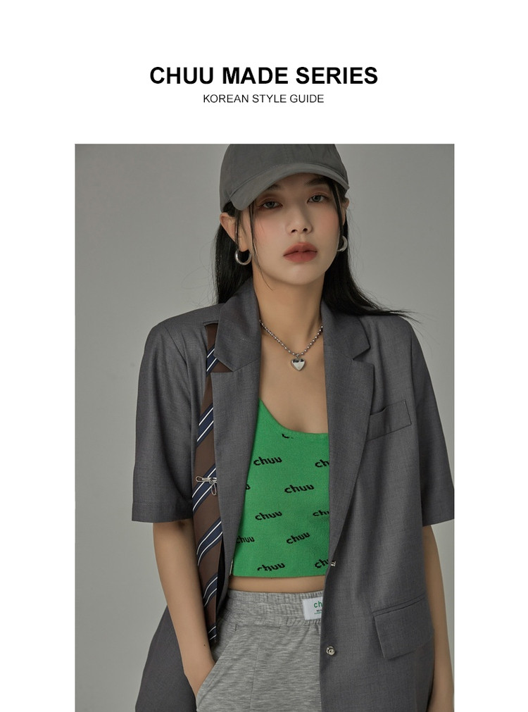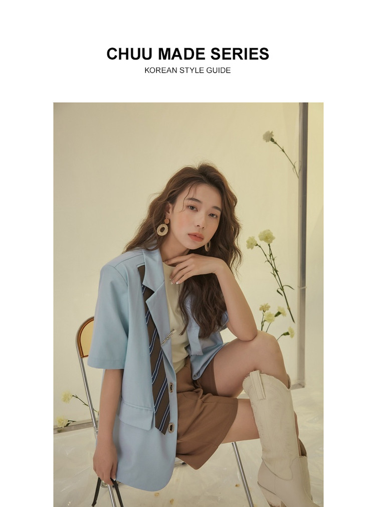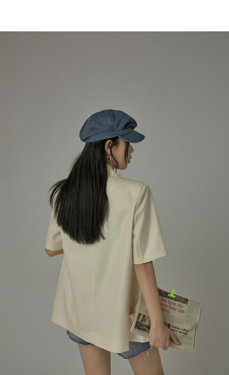商品名称:拼色领带短袖西装女春夏设计感小众口袋百搭短袖外套 879379