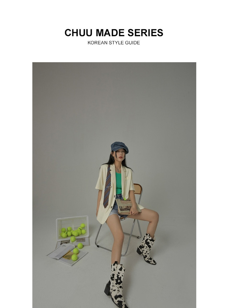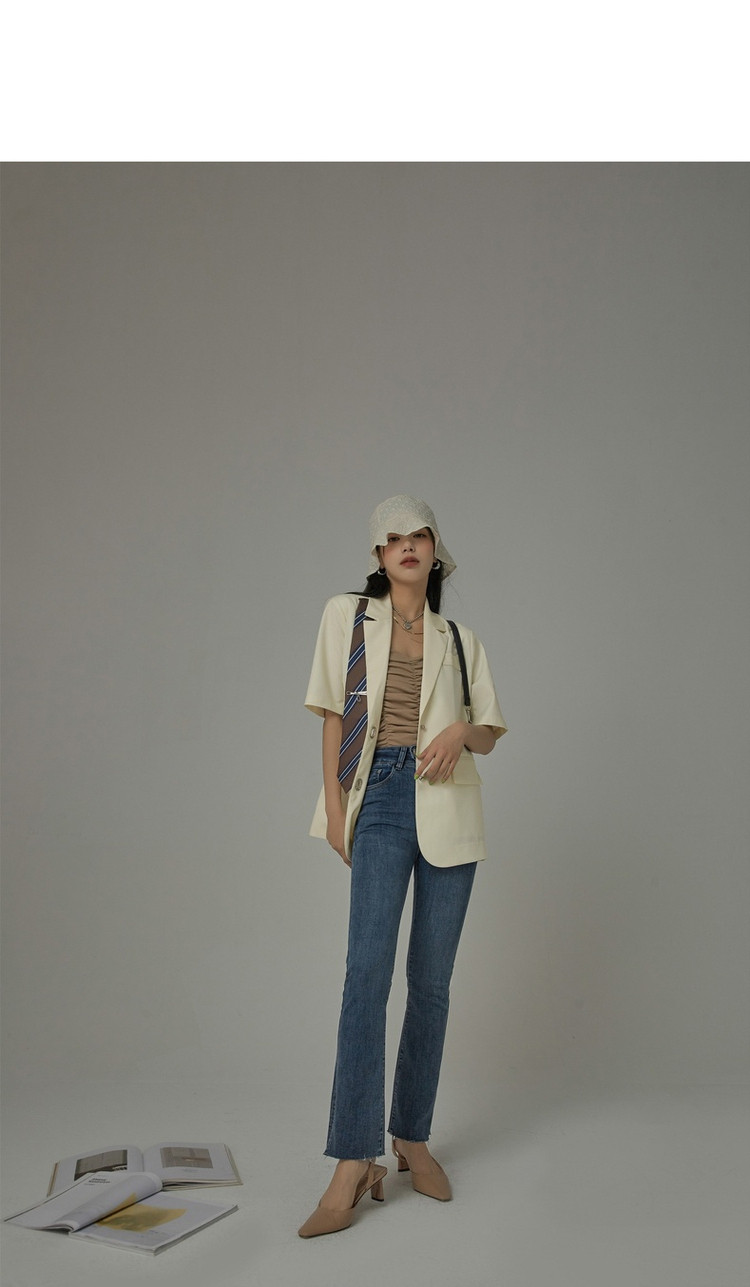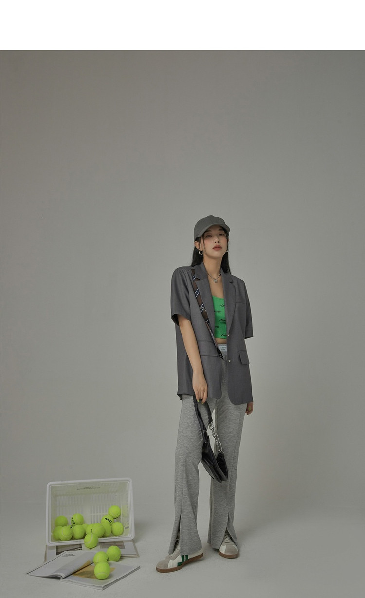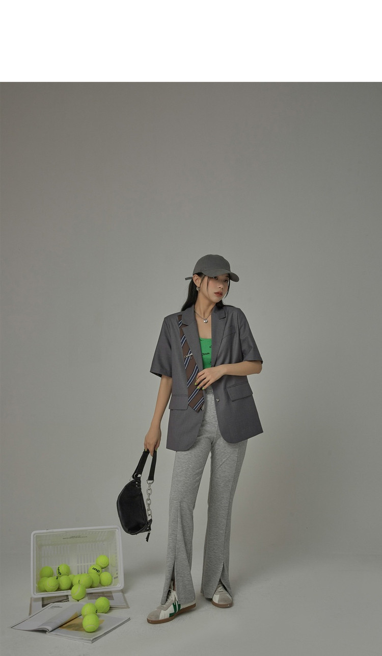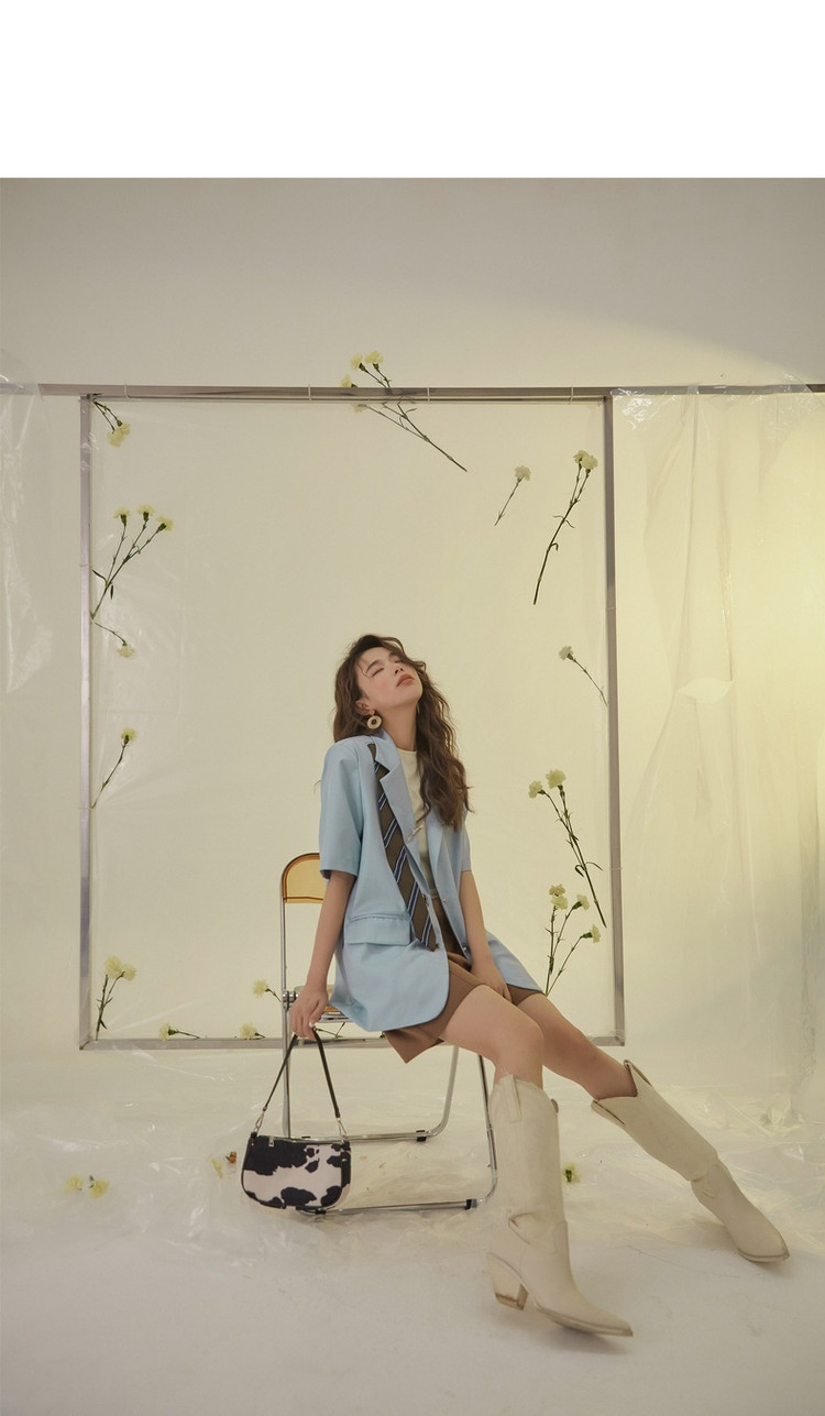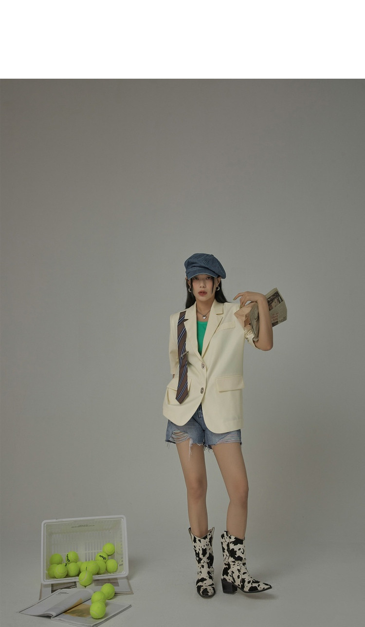 商品名称:拼色领带短袖西装女春夏设计感小众口袋百搭短袖外套 879379