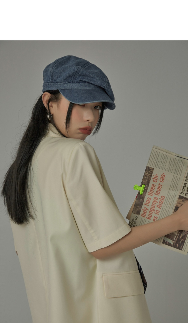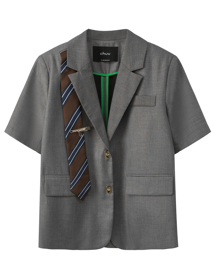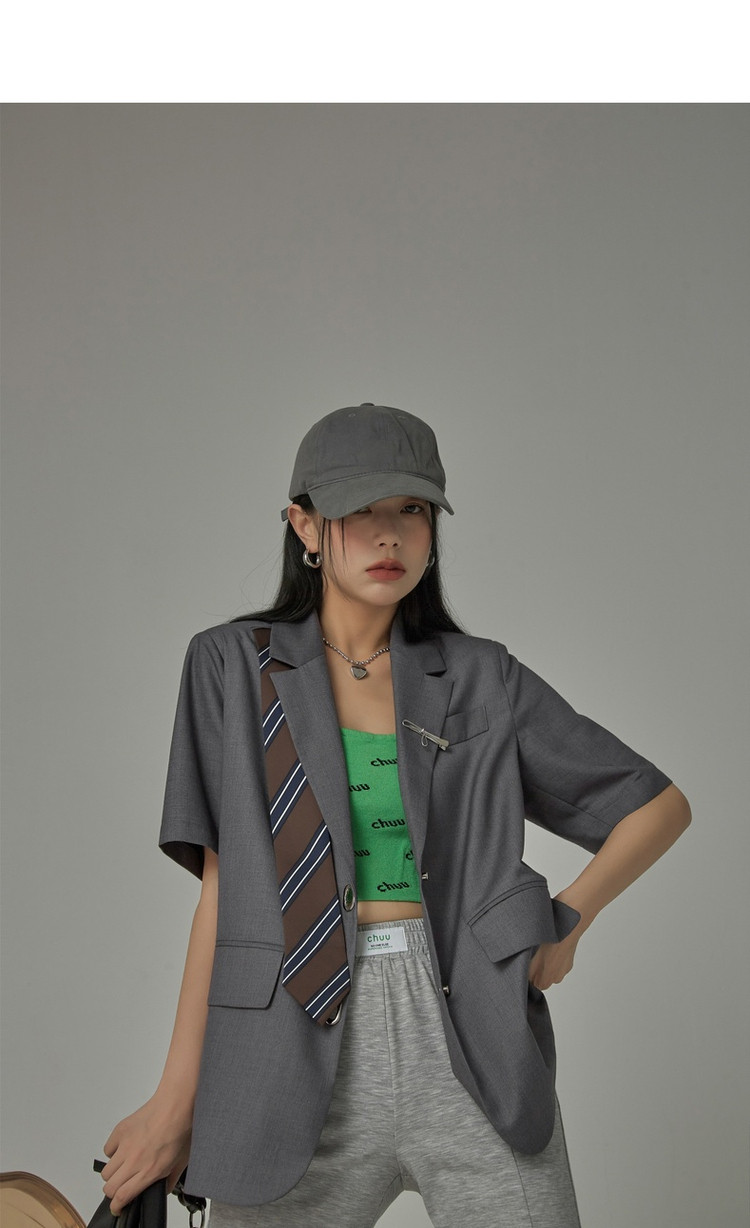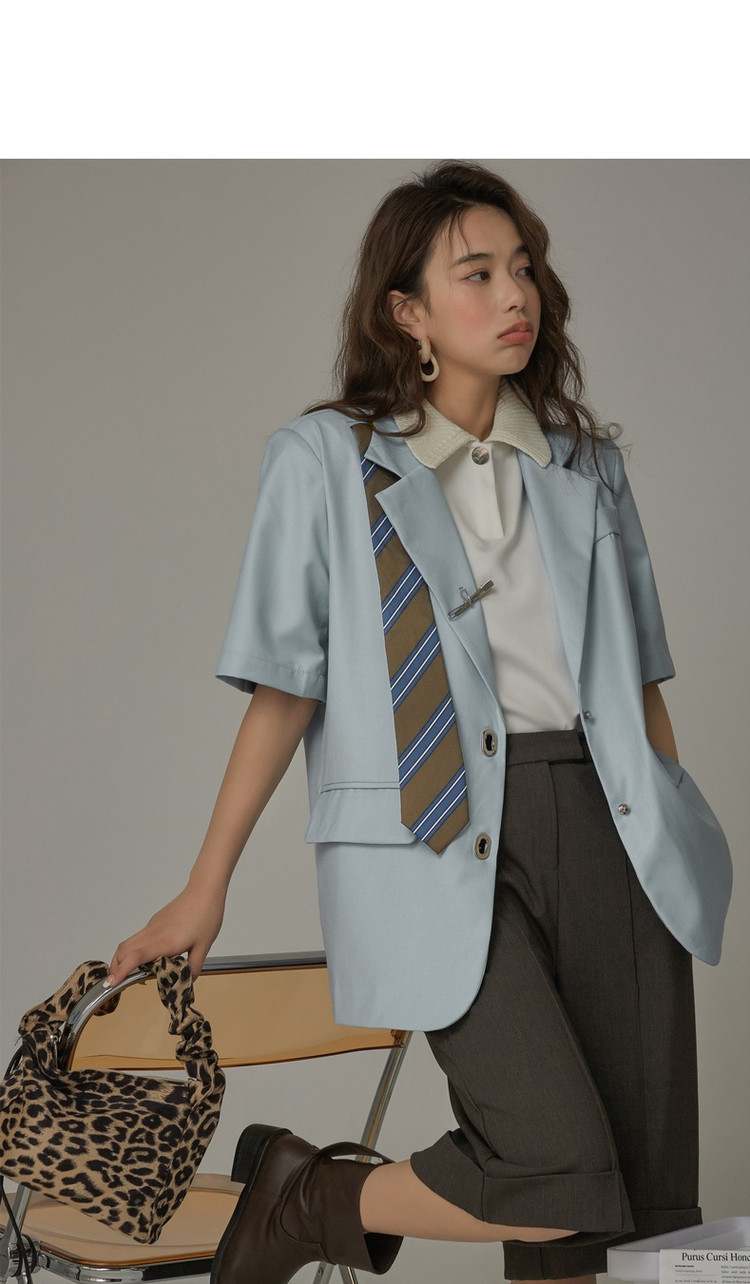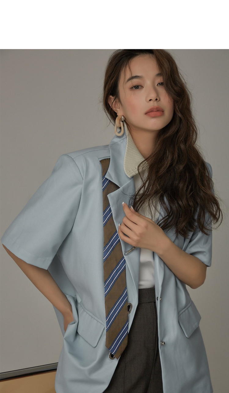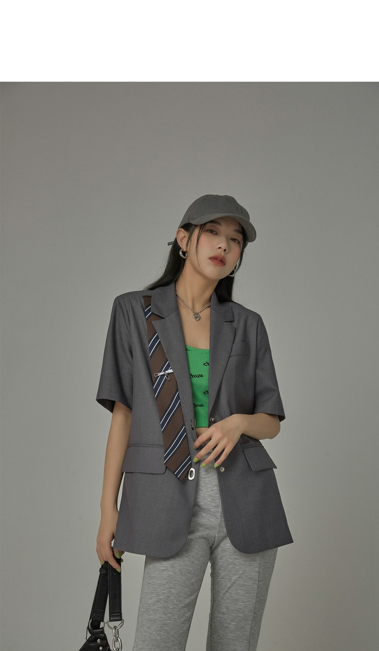 拼色领带短袖西装女春夏设计感小众口袋百搭短袖外套 879379