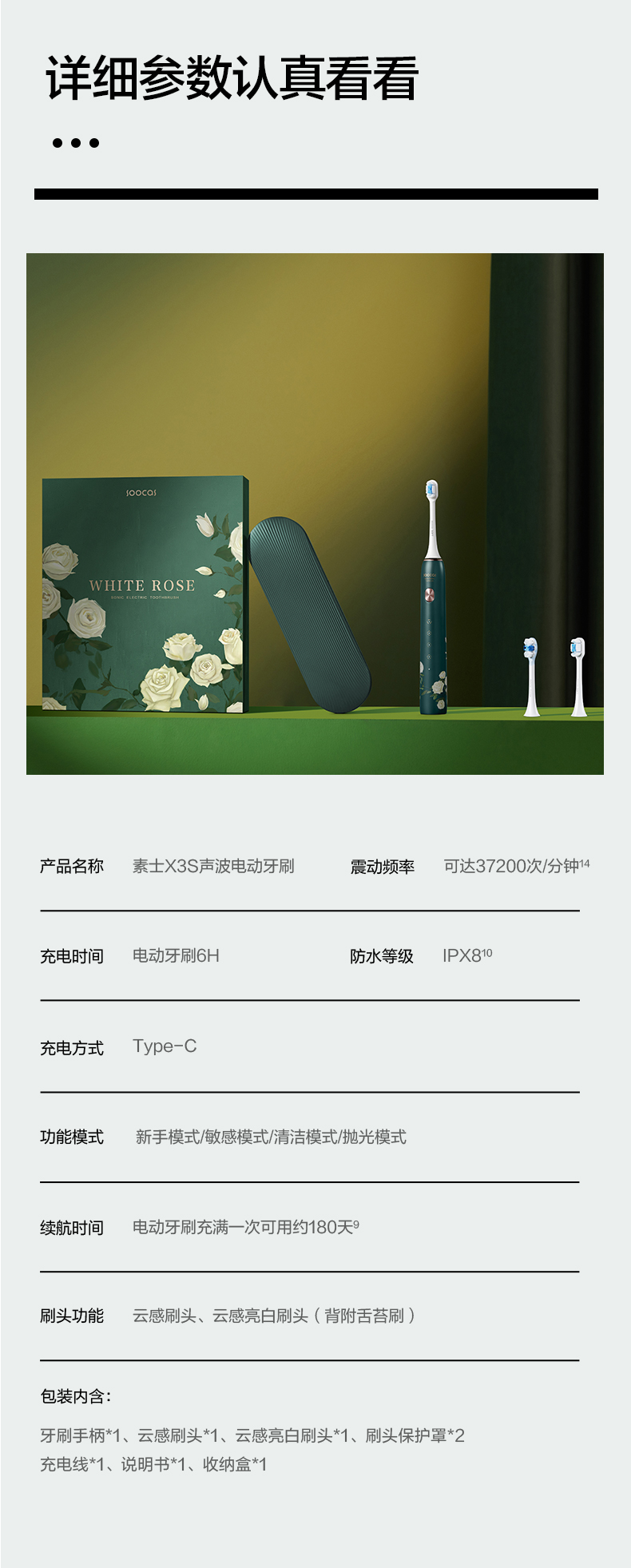 商品名称:soocas/素士声波电动牙刷X3S
