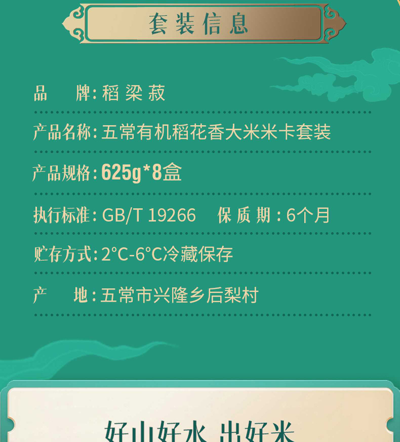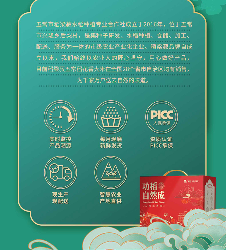 商品名称:稻梁菽功稻自然成五常有机稻花香大米礼盒5kg
