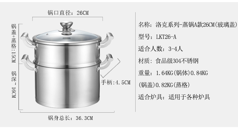 商品名称:omuda/欧美达26cm洛克系列蒸锅A款LKT26-A