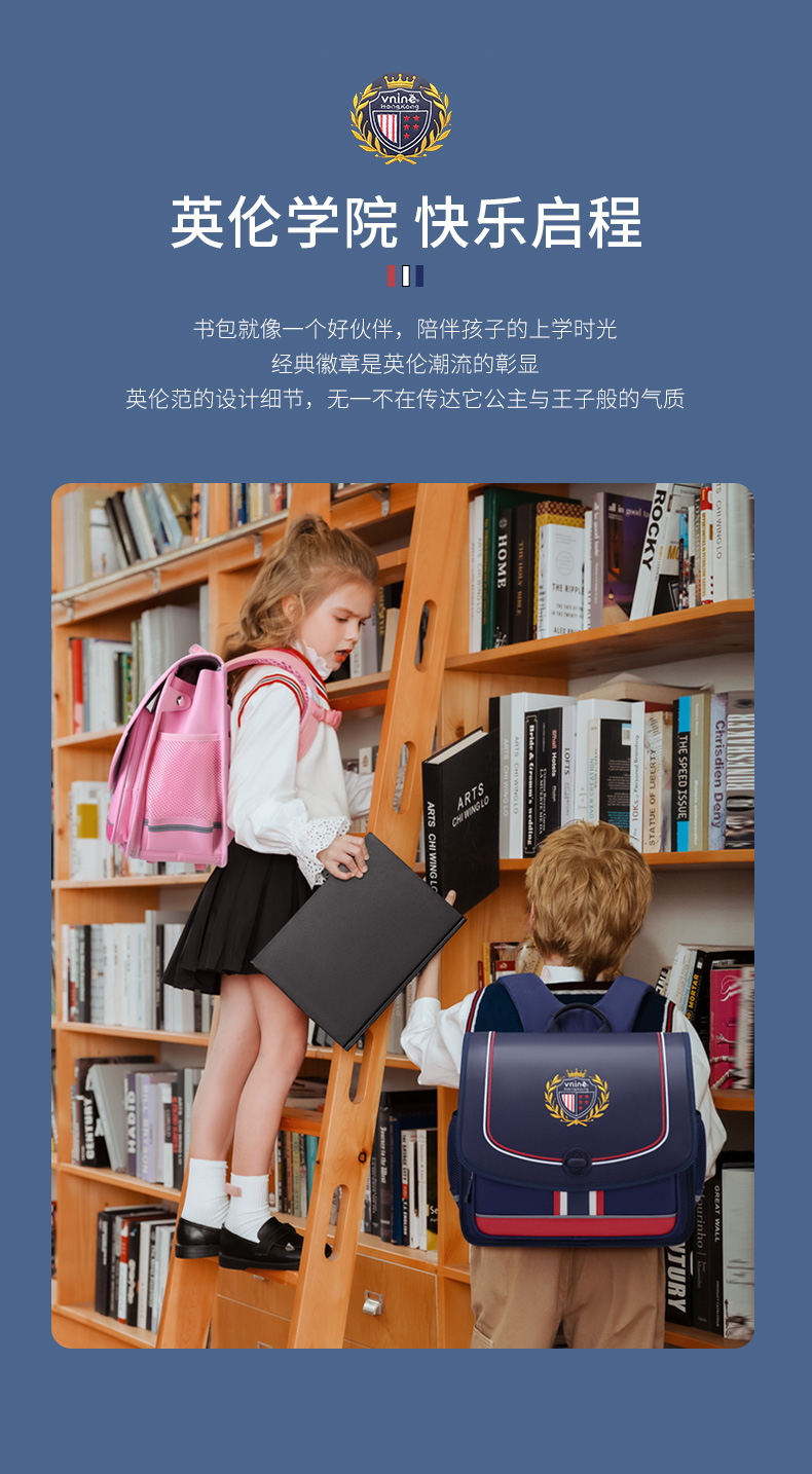 Vnine City/香港第九城堡小学生儿童护脊书包CS23996