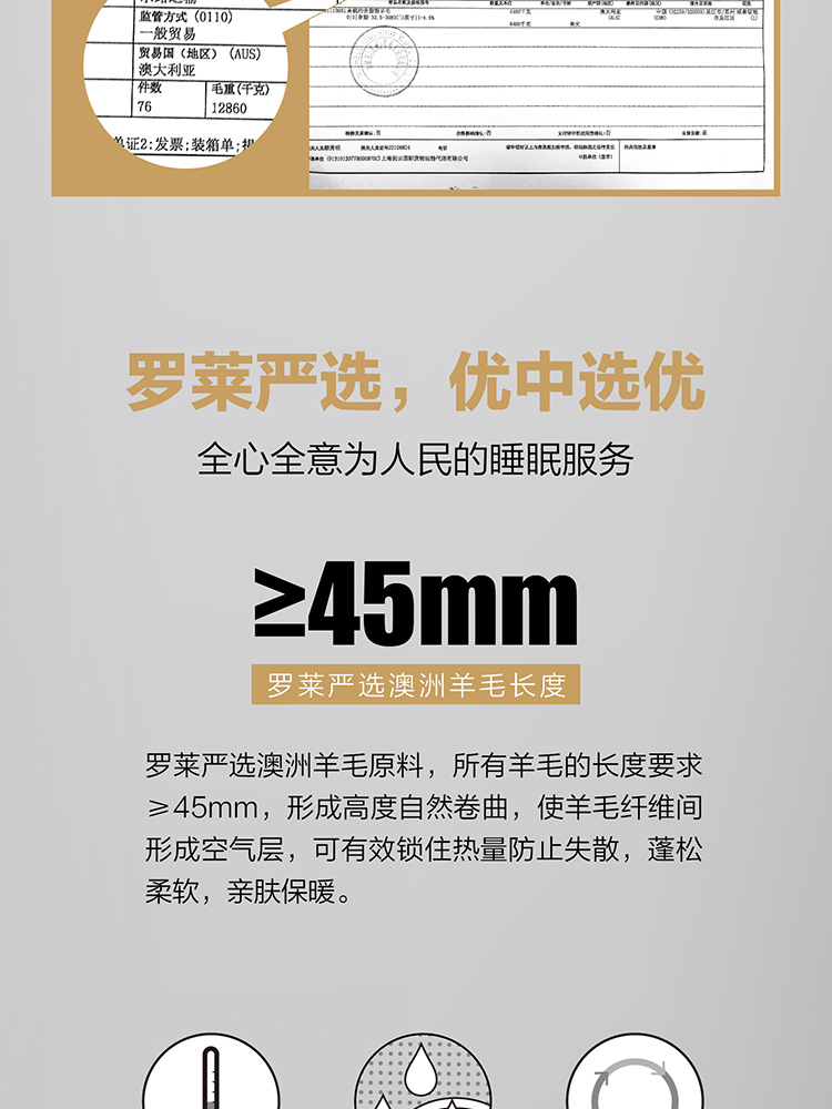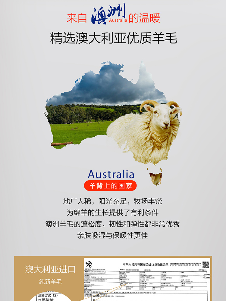 商品名称:LUOLAI/罗莱家纺馨暖澳洲防螨抗菌羊毛被200*230cm 2300g