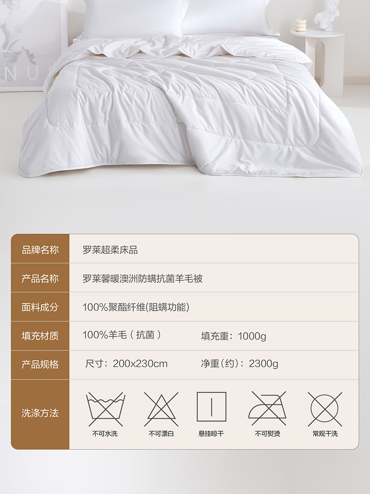 LUOLAI/罗莱家纺馨暖澳洲防螨抗菌羊毛被200*230cm 2300g