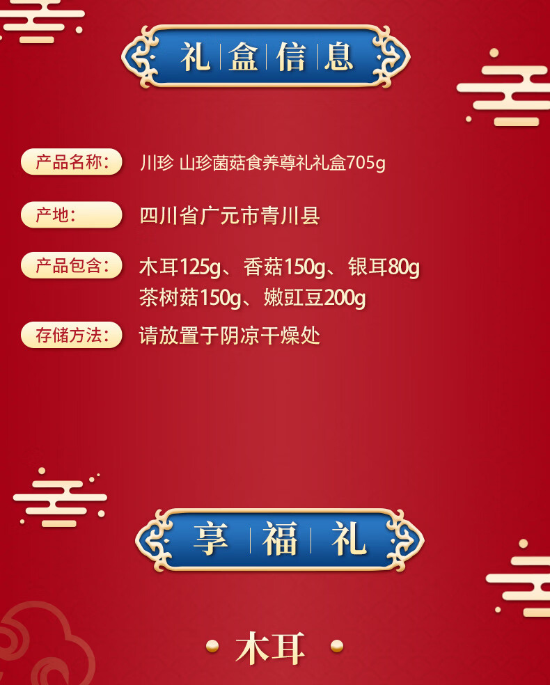 商品名称:川珍食养尊礼山珍菌菇干货礼盒705g
