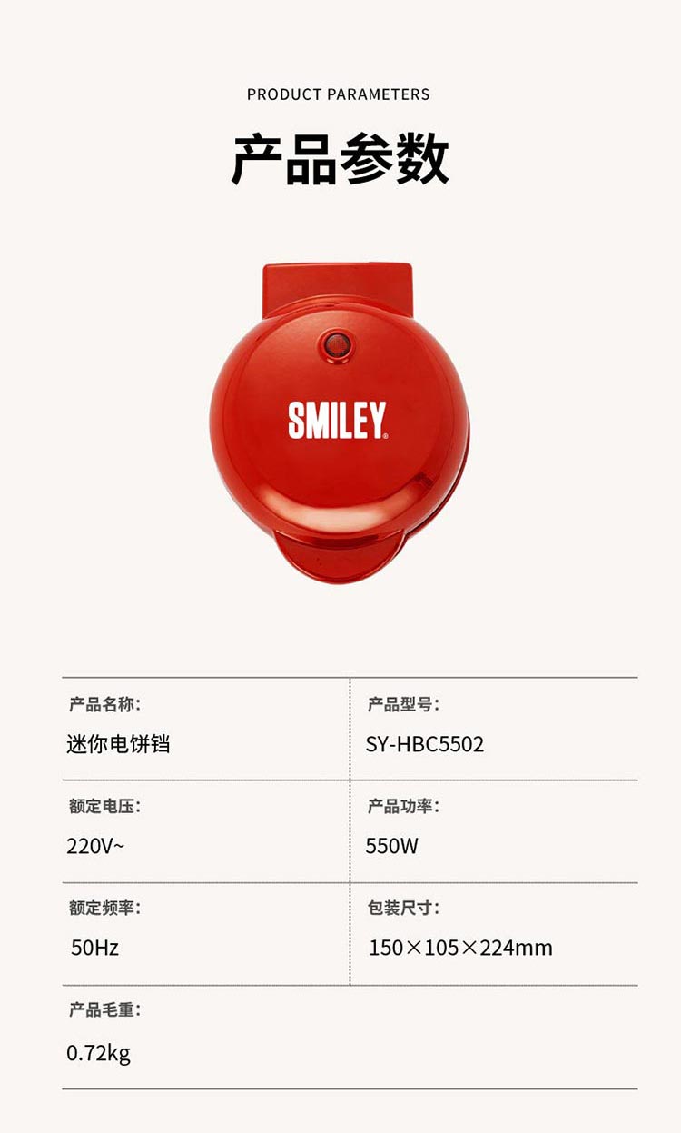 商品名称:SMILEY 迷你电饼铛SY-HBC5502