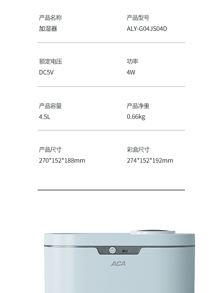 商品名称:ACA/北美电器4.5升加湿器ALY-G04JS04D