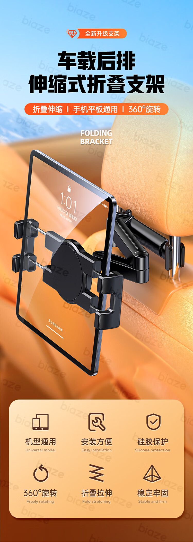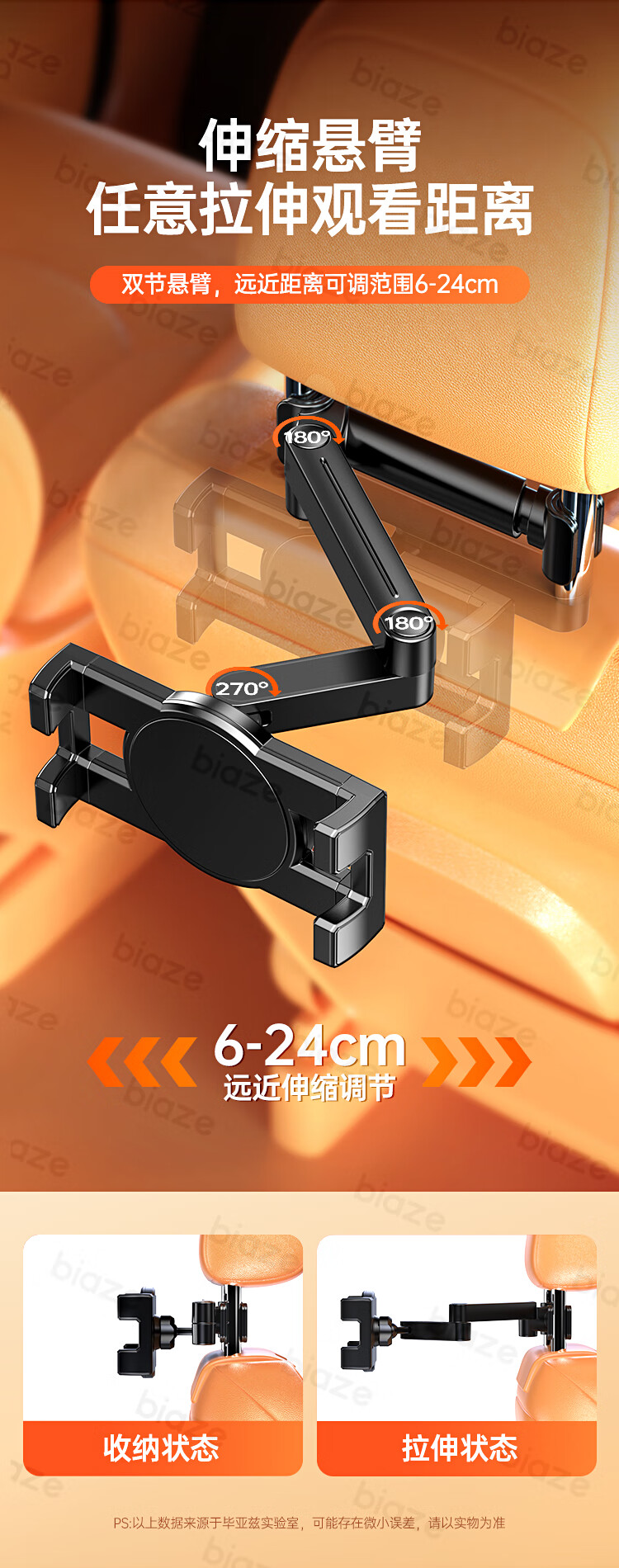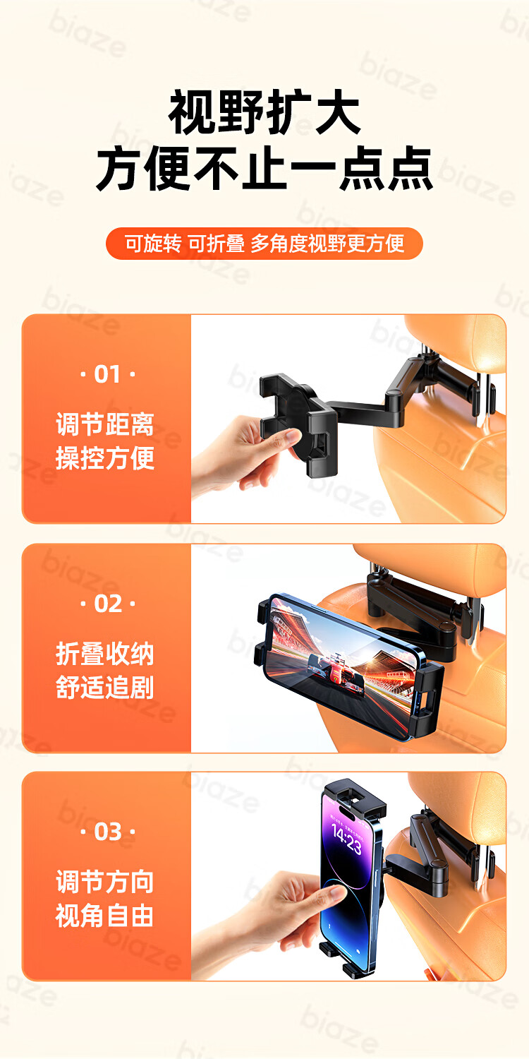 商品名称:BIAZE/毕亚兹汽车后排折叠支架-黑色C116