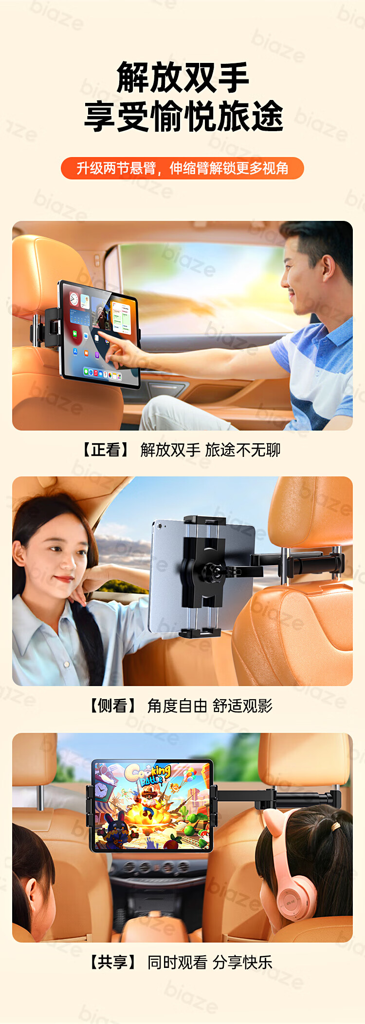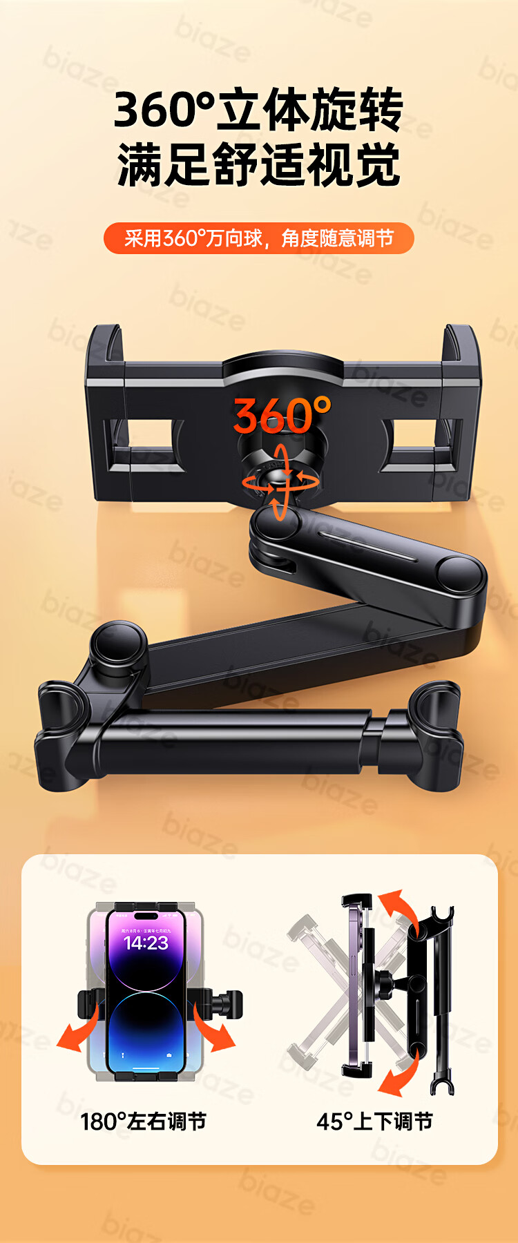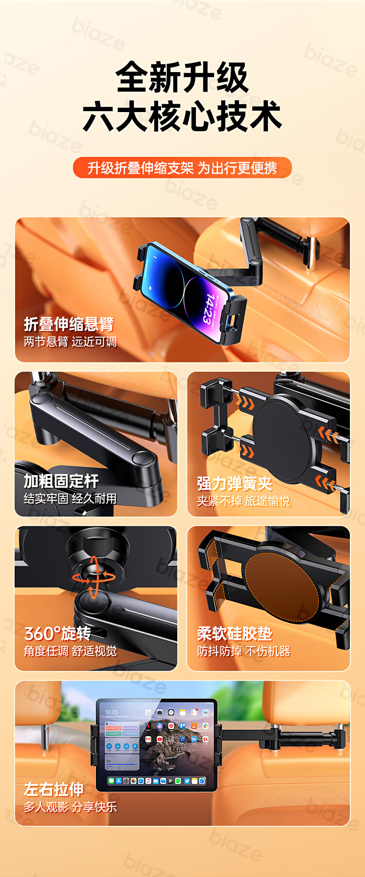 商品名称:BIAZE/毕亚兹汽车后排折叠支架-黑色C116
