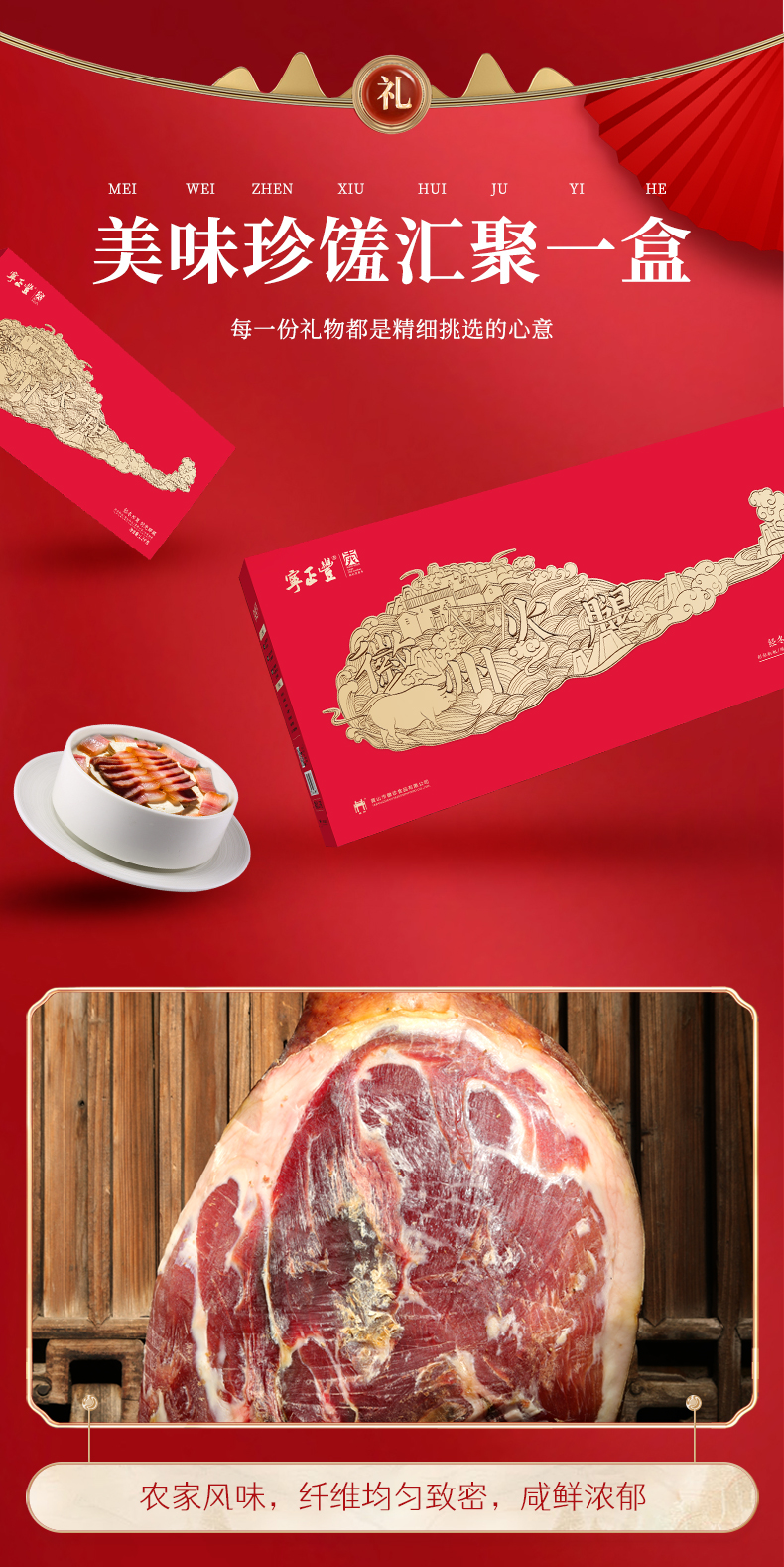 商品名称:宁正丰徽州猪火腿礼盒1200g