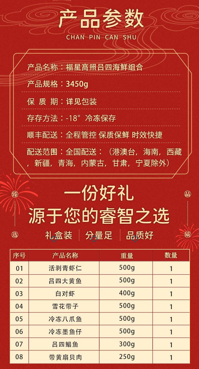商品名称:【顺丰配送】淘鲜拾光福星高照吕四海鲜组合3450g
