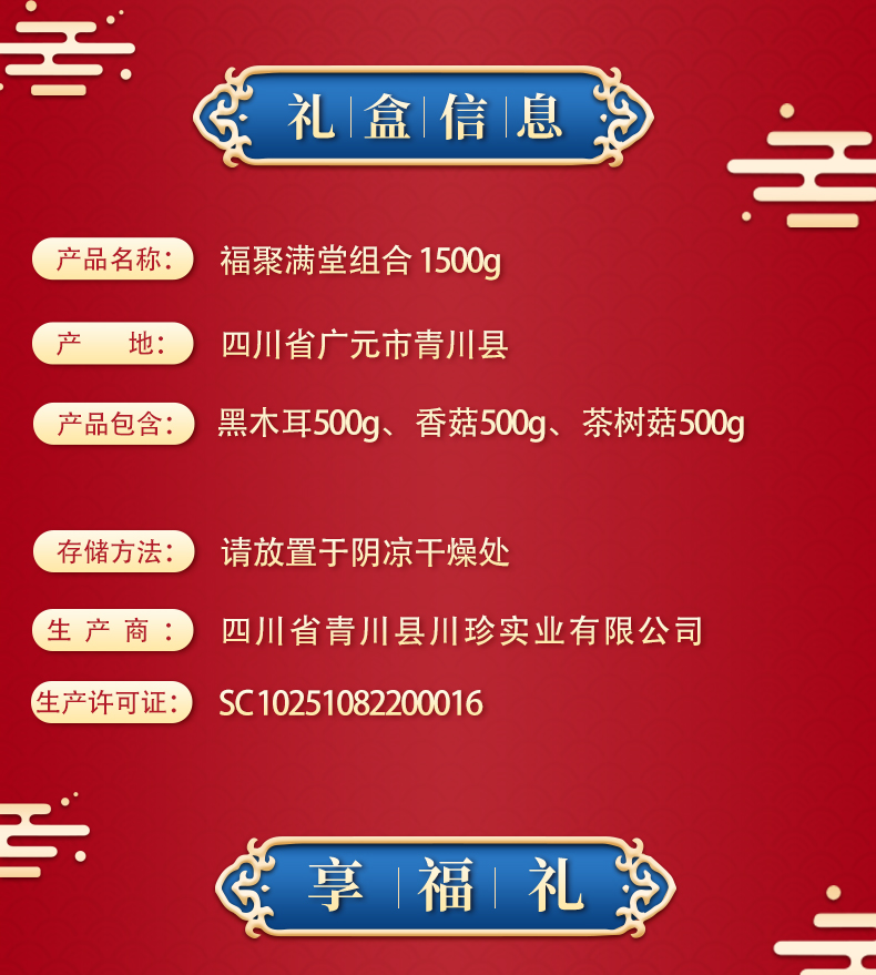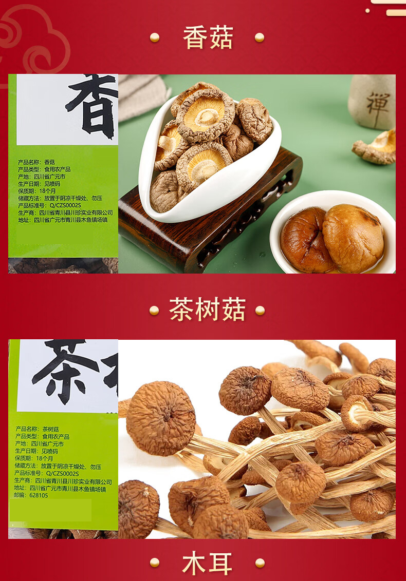 商品名称:川珍福聚满堂菌菇干货礼盒1500g