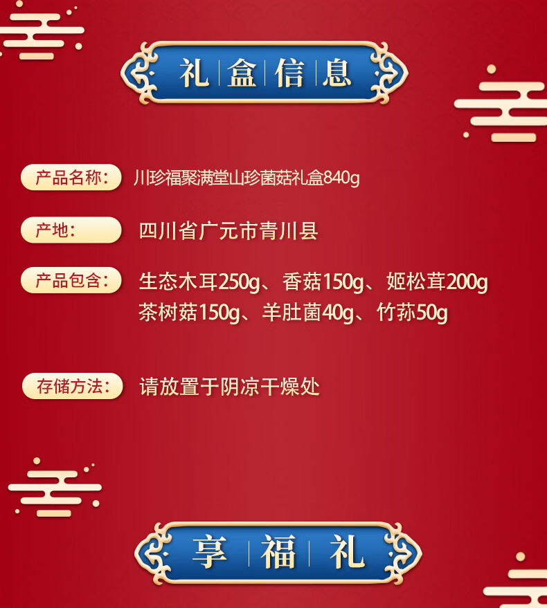 商品名称:川珍福聚满堂山珍菌菇礼盒840g