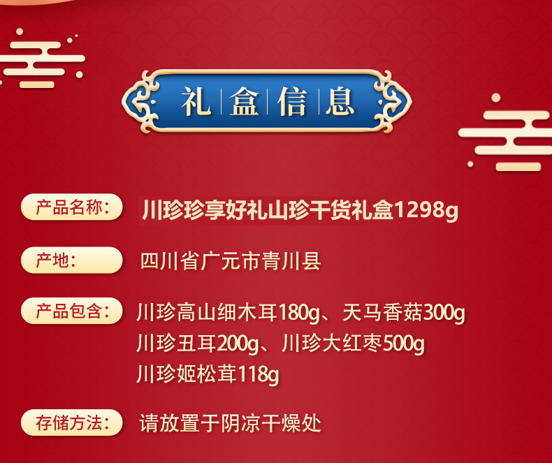 商品名称:川珍珍享好礼山珍干货礼盒1298g