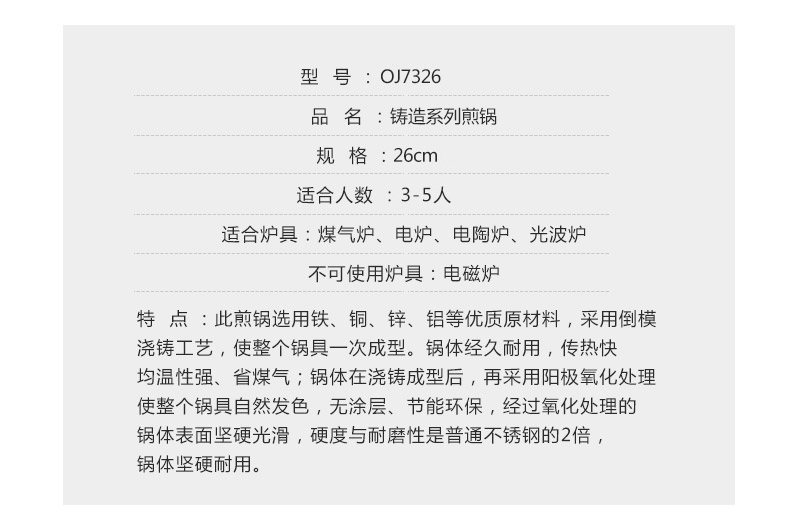 商品名称:omuda/欧美达26cm格特匠心重力铸造煎锅OJ7326