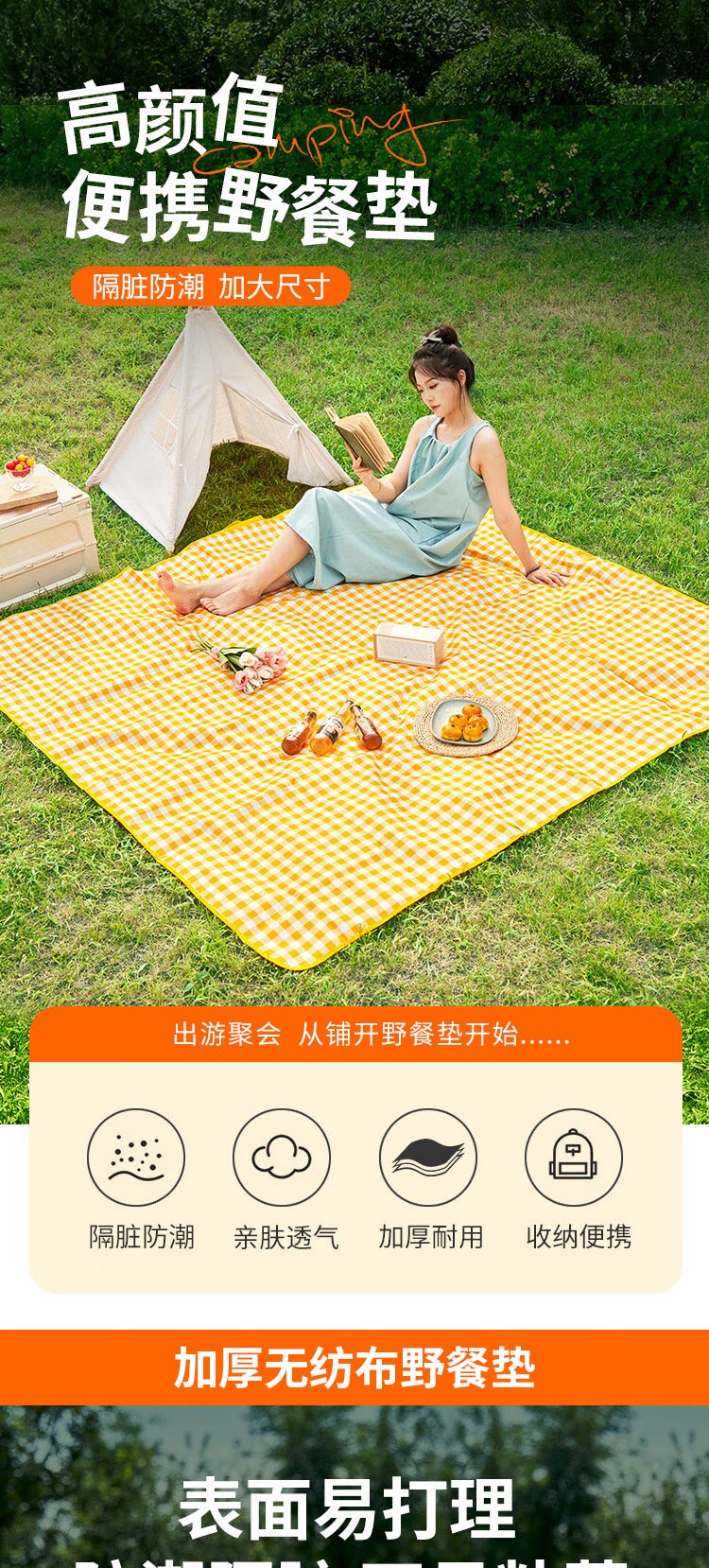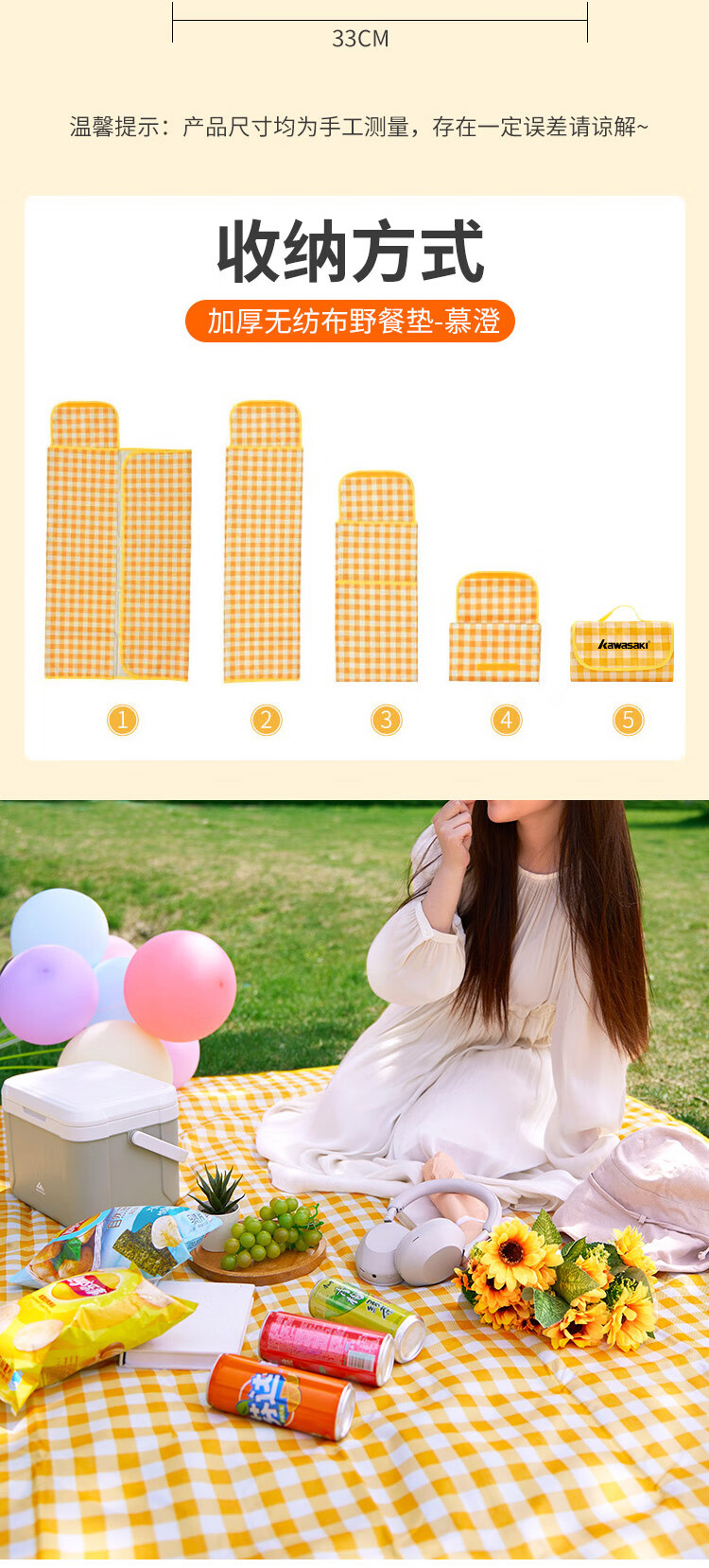 商品名称:KAWASAKI/川崎户外野餐垫-白黄格200*200cm K3I00-A0812-1