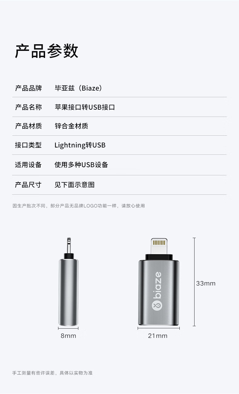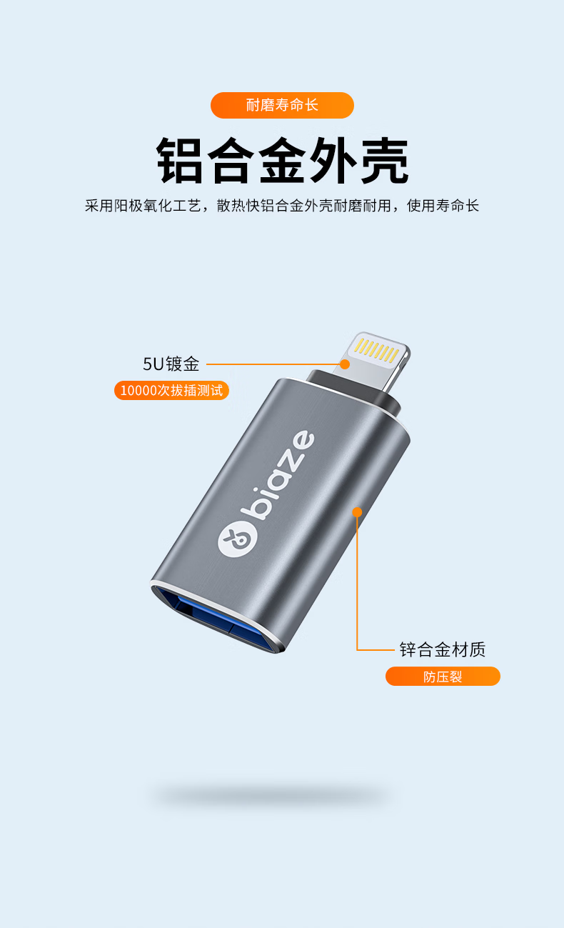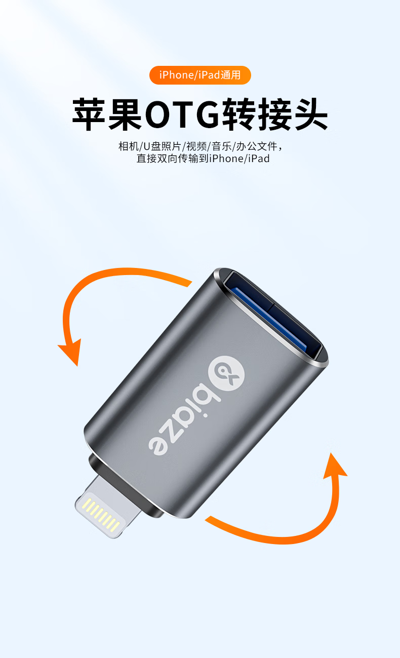 商品名称:BIAZE/毕亚兹苹果接口转USB接口A52-灰