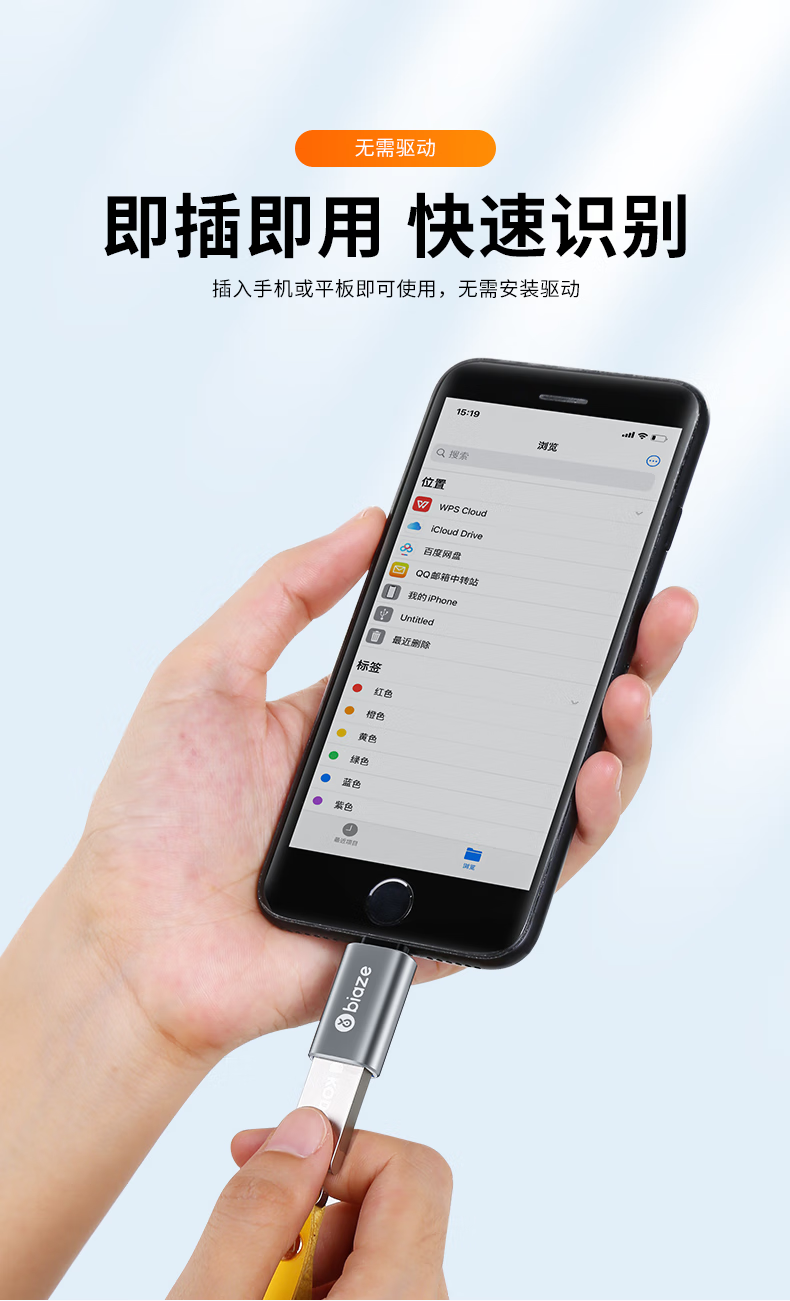 BIAZE/毕亚兹苹果接口转USB接口A52-灰