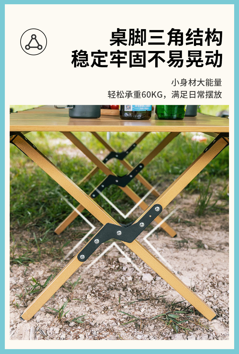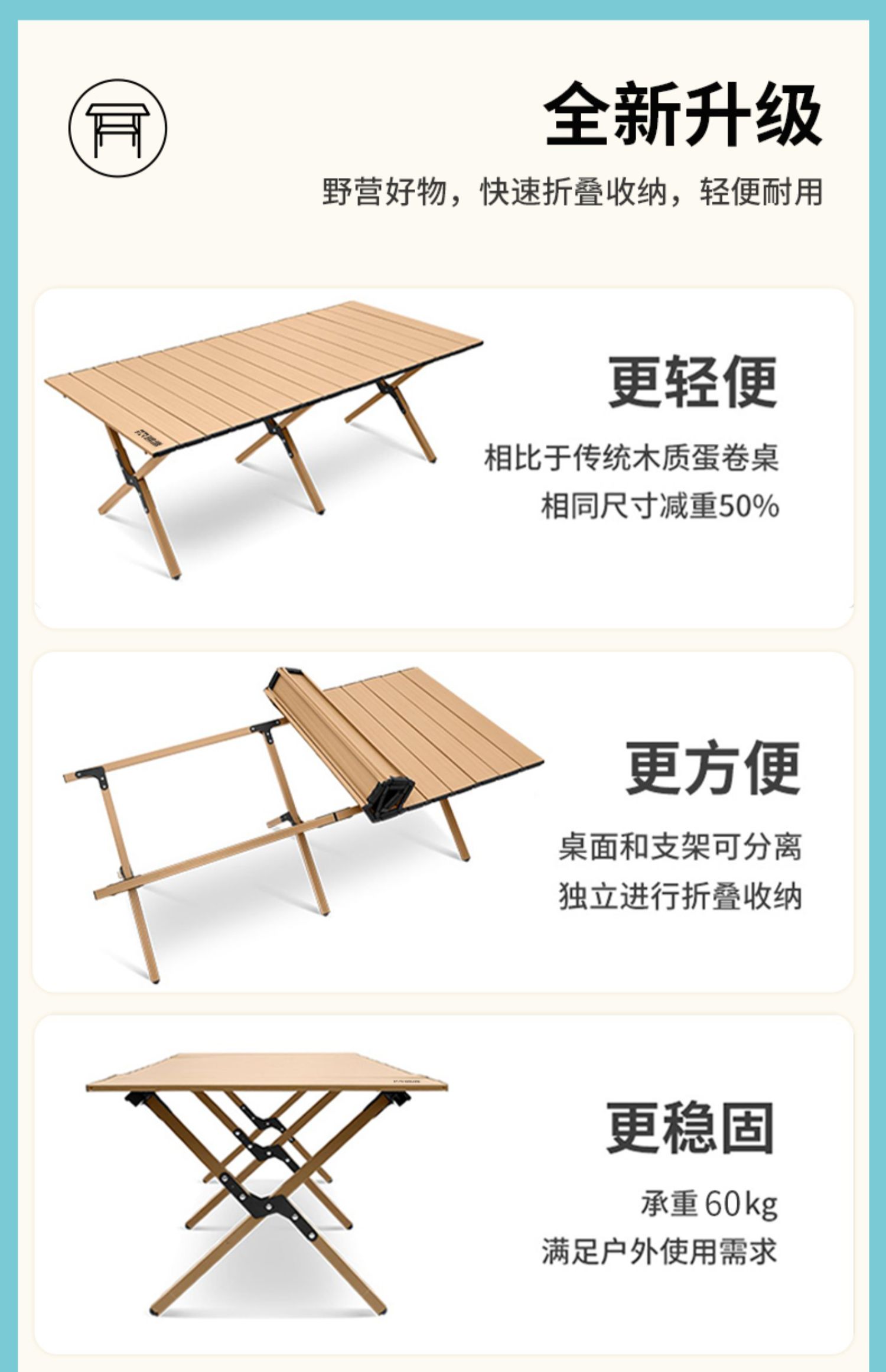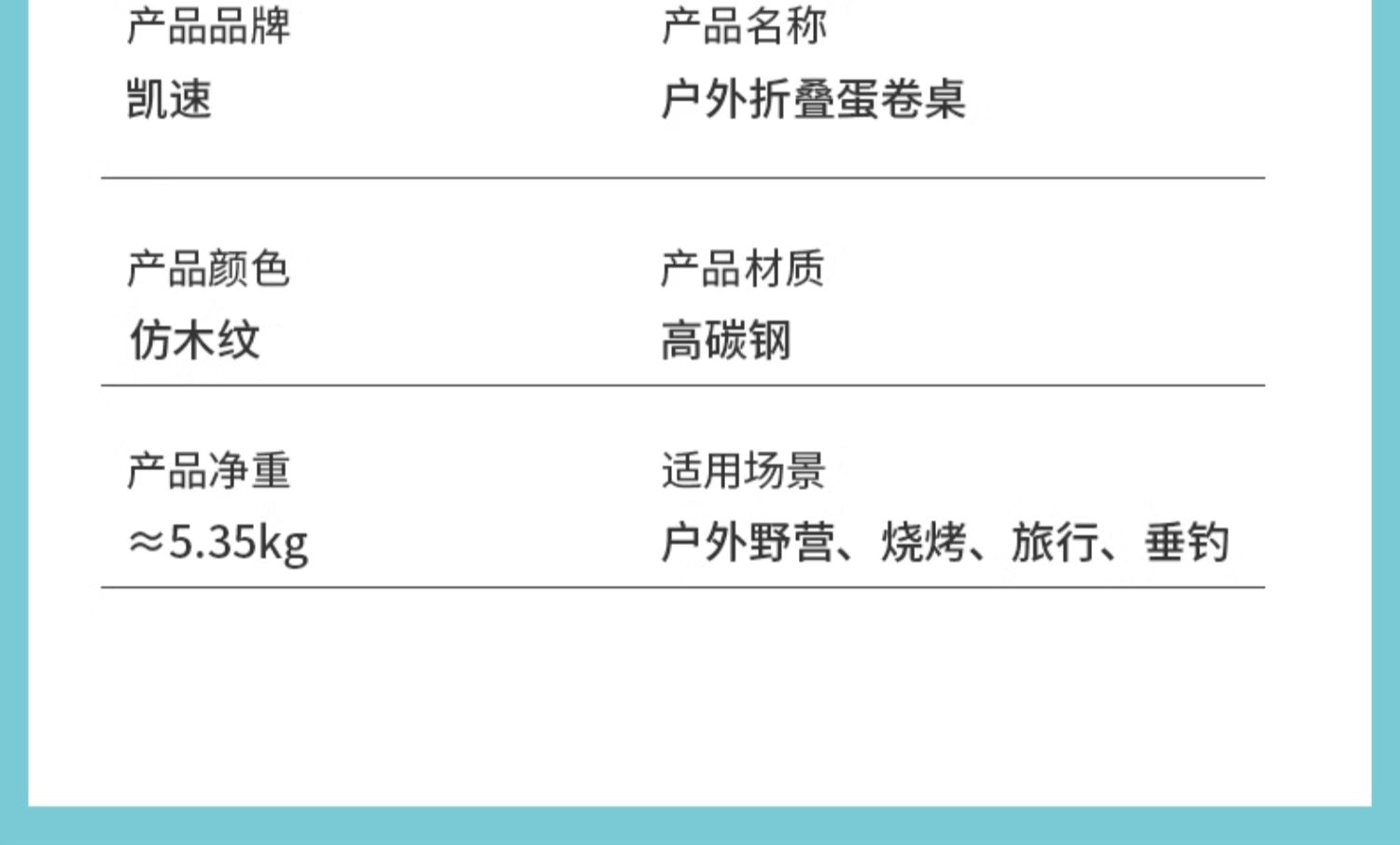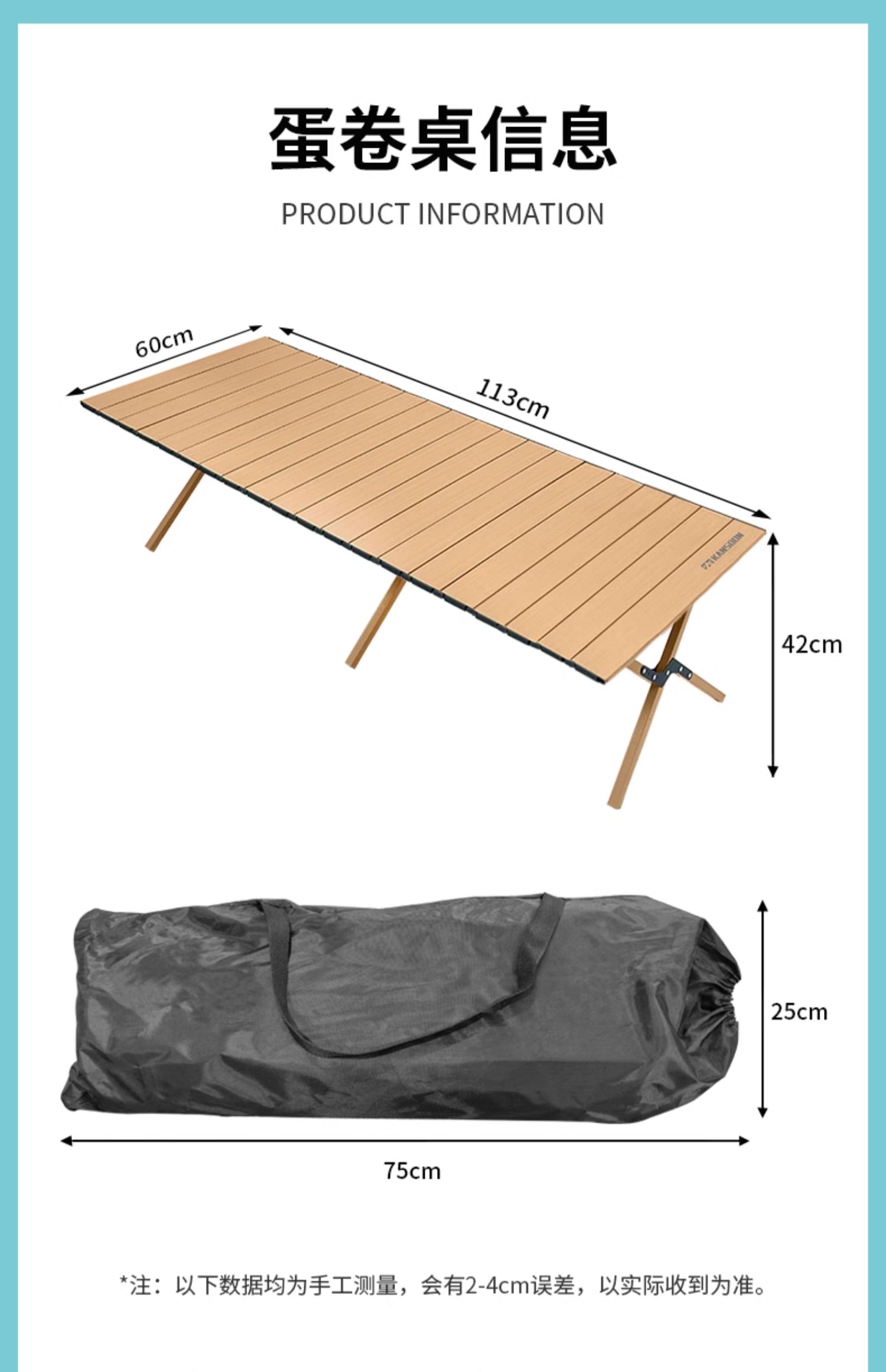 商品名称:凯速户外便携折叠蛋卷桌-仿木纹色DJ01