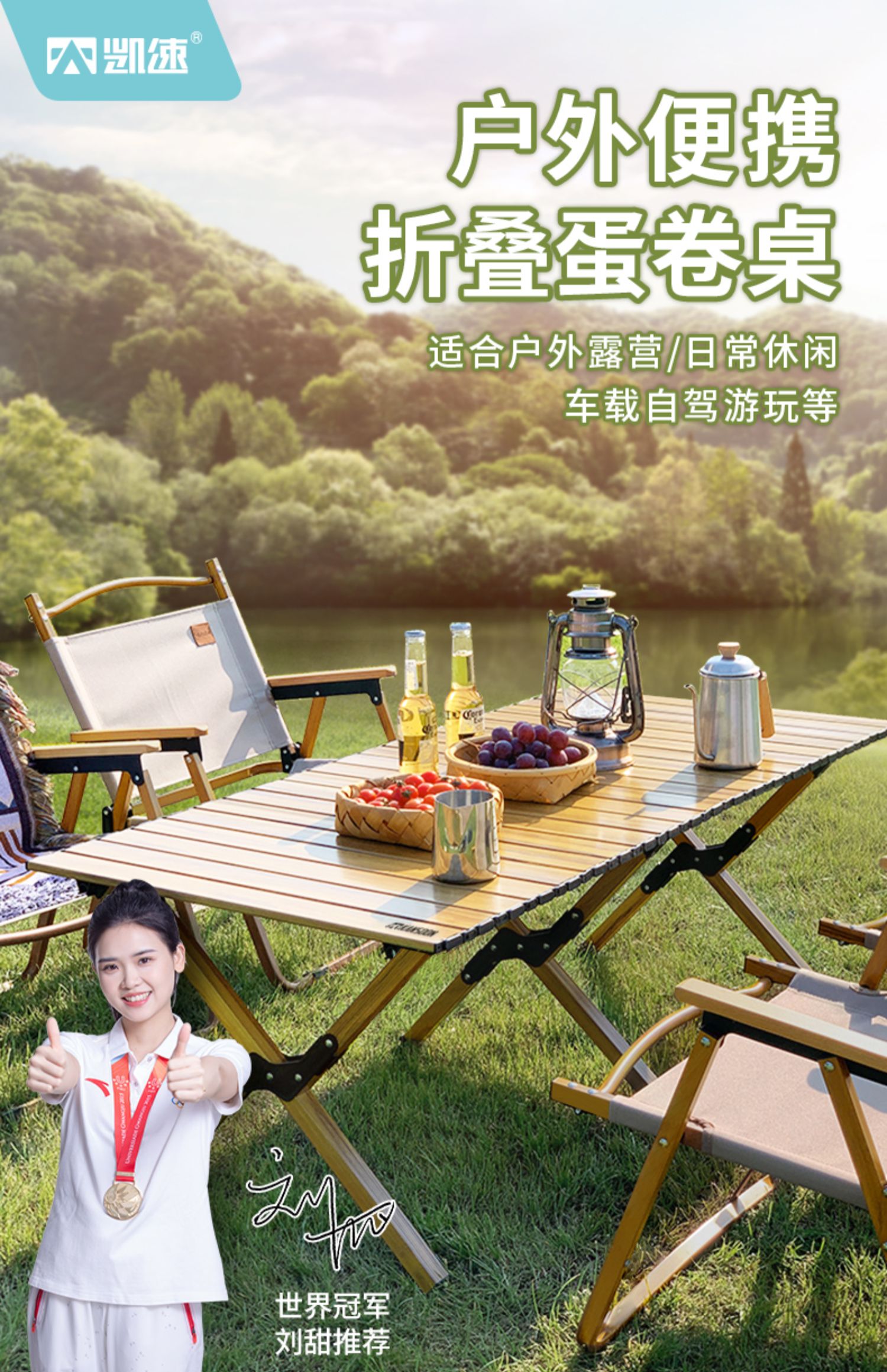凯速户外便携折叠蛋卷桌-仿木纹色DJ01