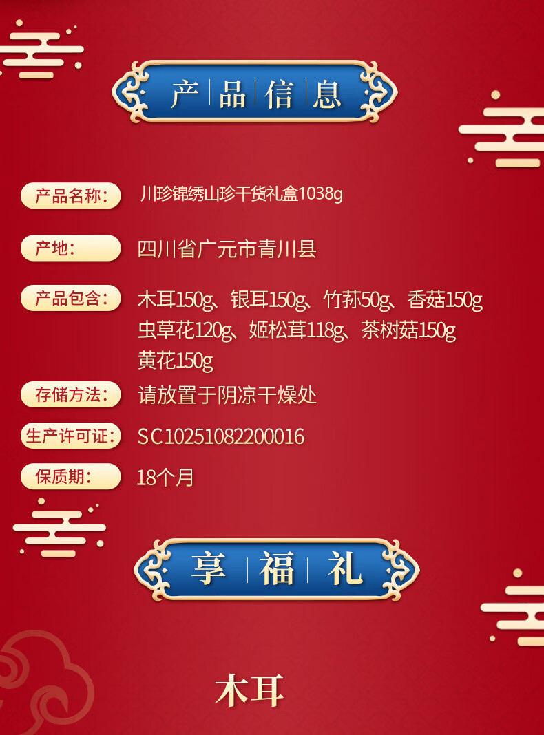商品名称:川珍锦绣山珍干货礼盒1038g