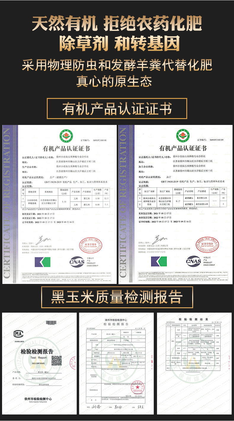 商品名称:小农仙非转基因有机黑玉米160g*6支