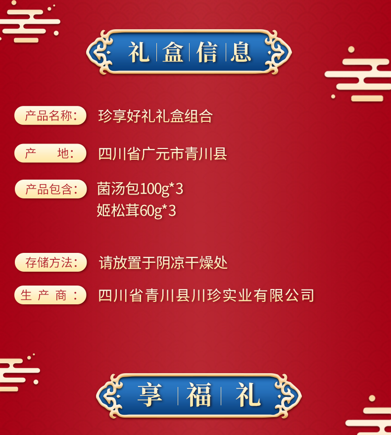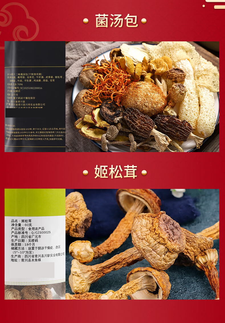 商品名称:川珍珍享好礼十二味菌汤包姬松茸组合干货礼盒480g