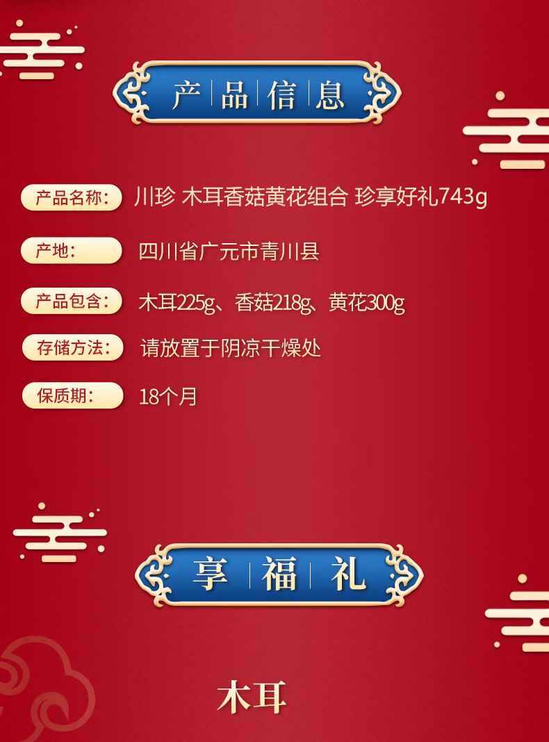 商品名称:川珍珍享好礼菌菇干货礼盒743g