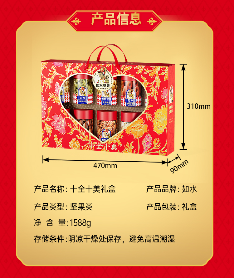 商品名称:【京东配送】如水十全十美坚果零食礼盒1588g