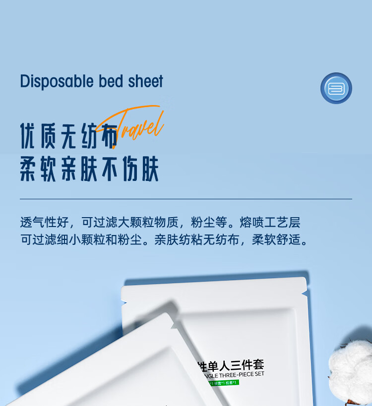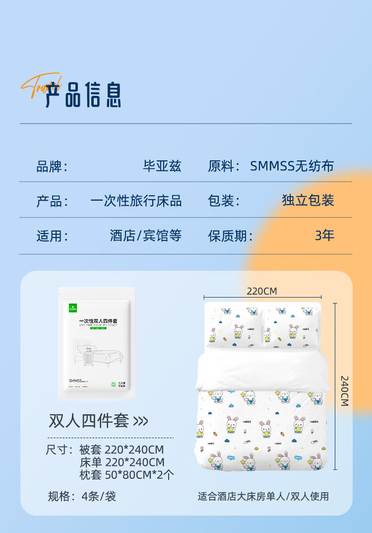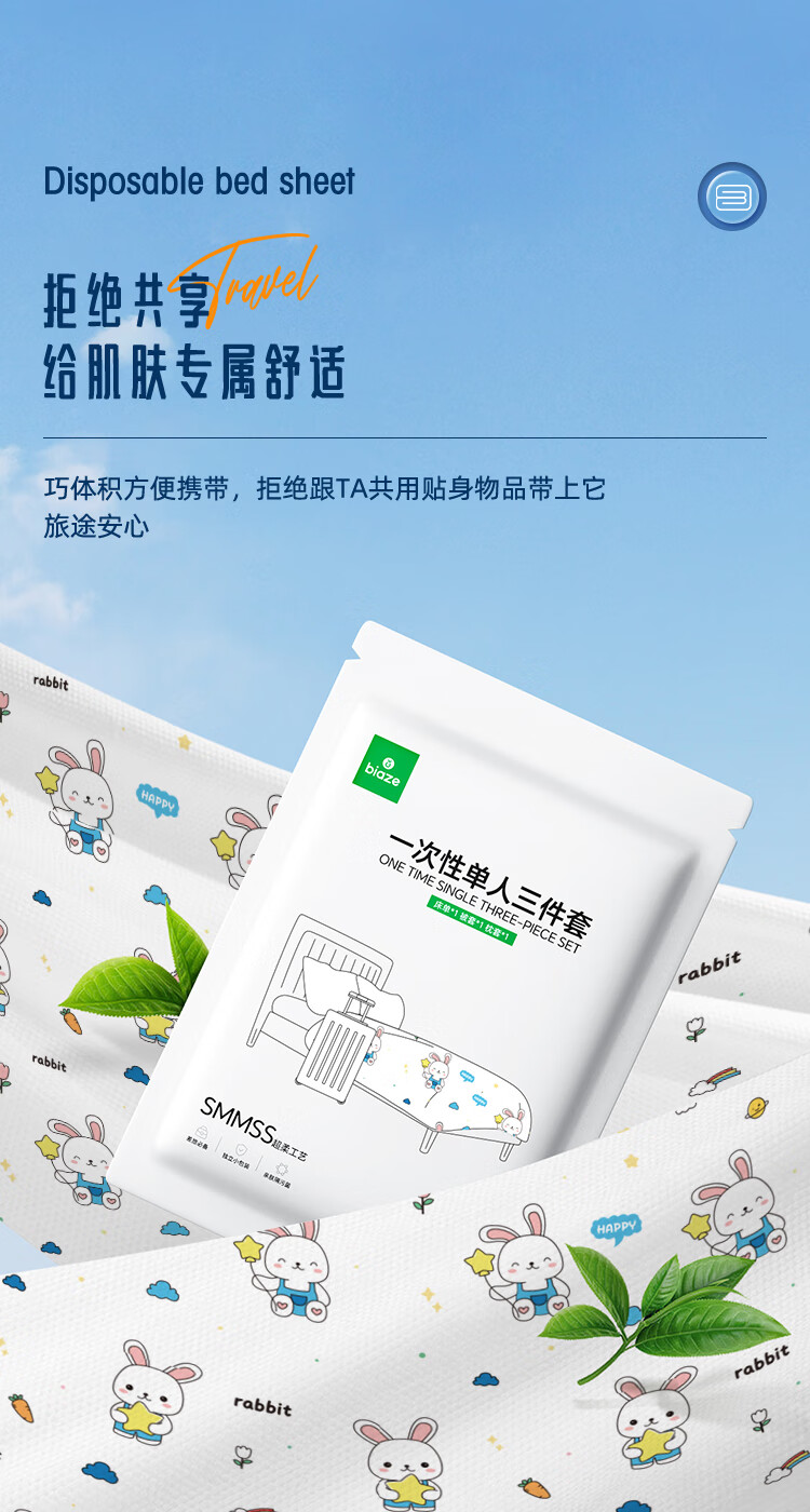 商品名称:BIAZE/毕亚兹一次性旅行床品四件套*3包ZB126