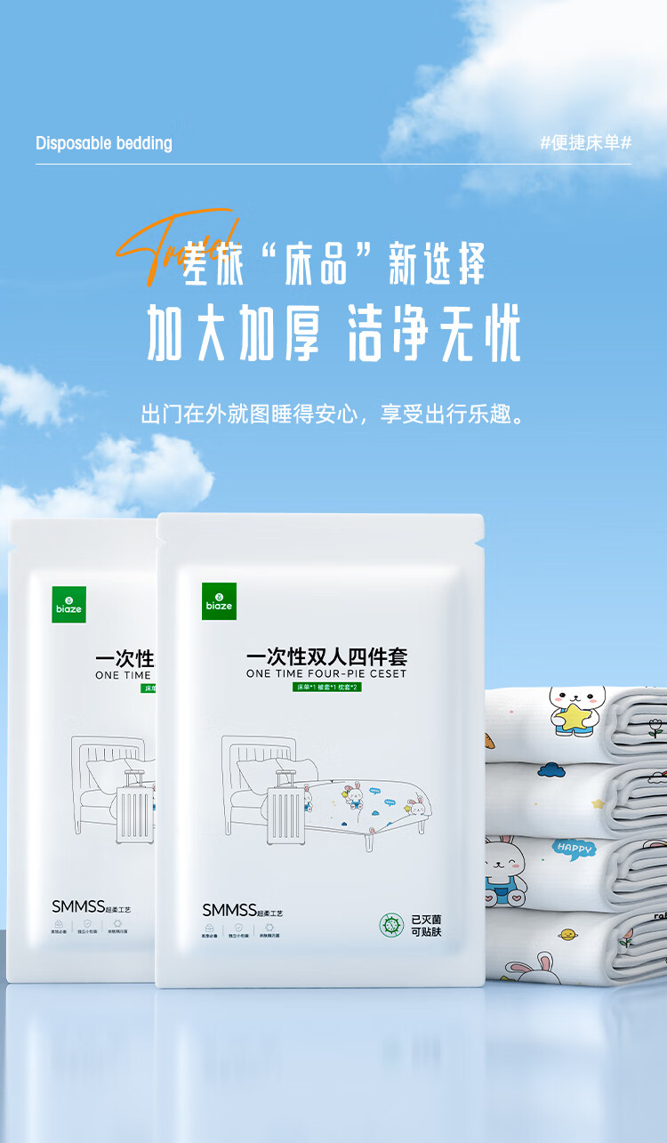 BIAZE/毕亚兹一次性旅行床品四件套*3包ZB126