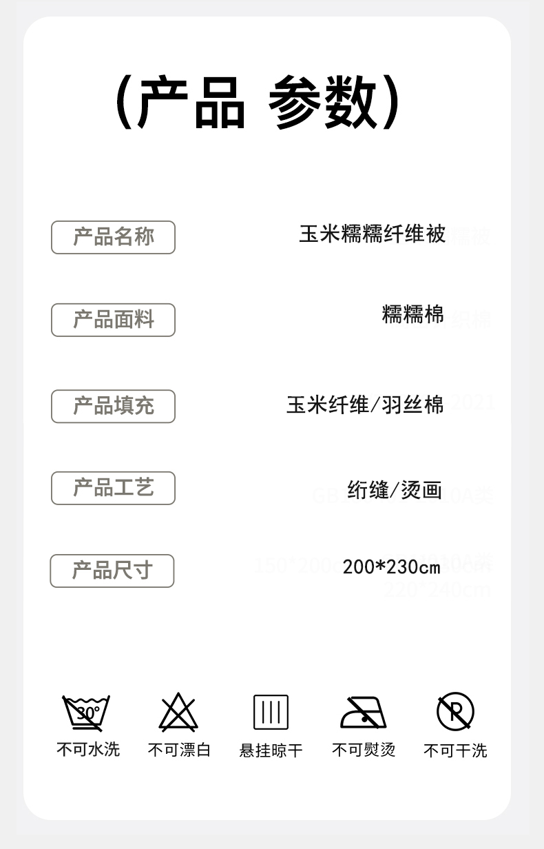 商品名称:PAULO PEDRO/保罗彼得玉米糯糯纤维被200*230cm 2200g