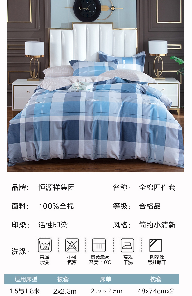 商品名称:恒源祥彩羊三宅一生蓝全棉床品四件套200*230cm