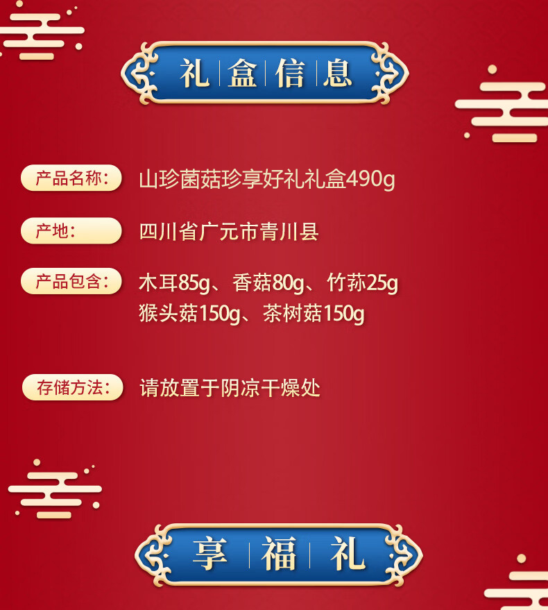 商品名称:川珍珍享好礼山珍菌菇礼盒490g