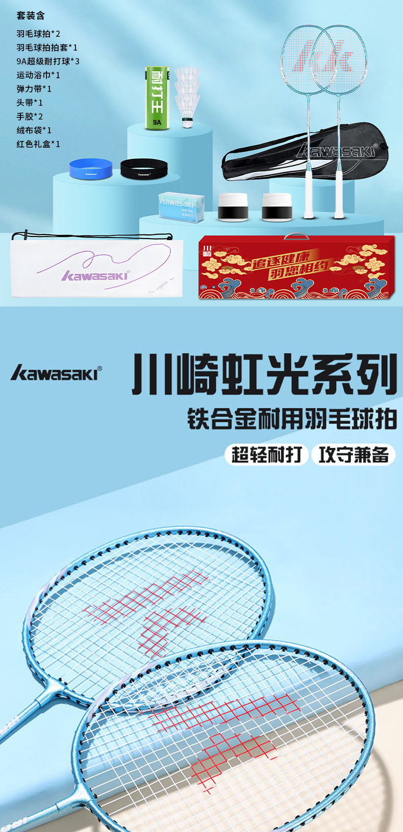 商品名称:KAWASAKI/川崎羽毛球拍运动套装IRON-007(套装C07)