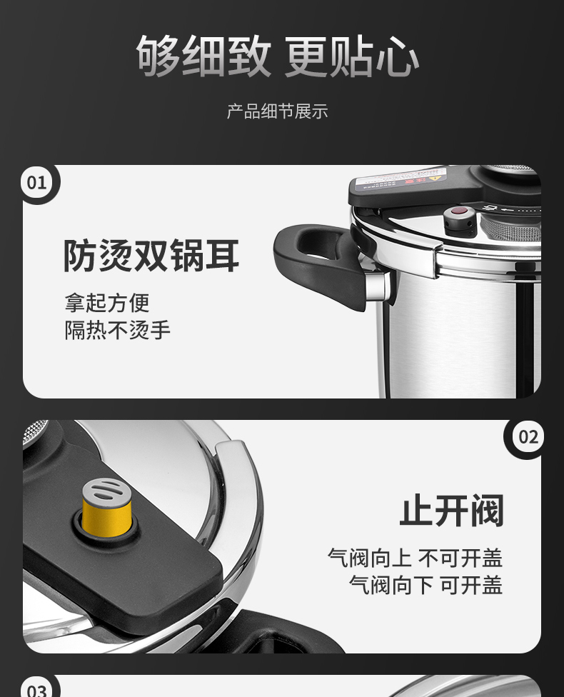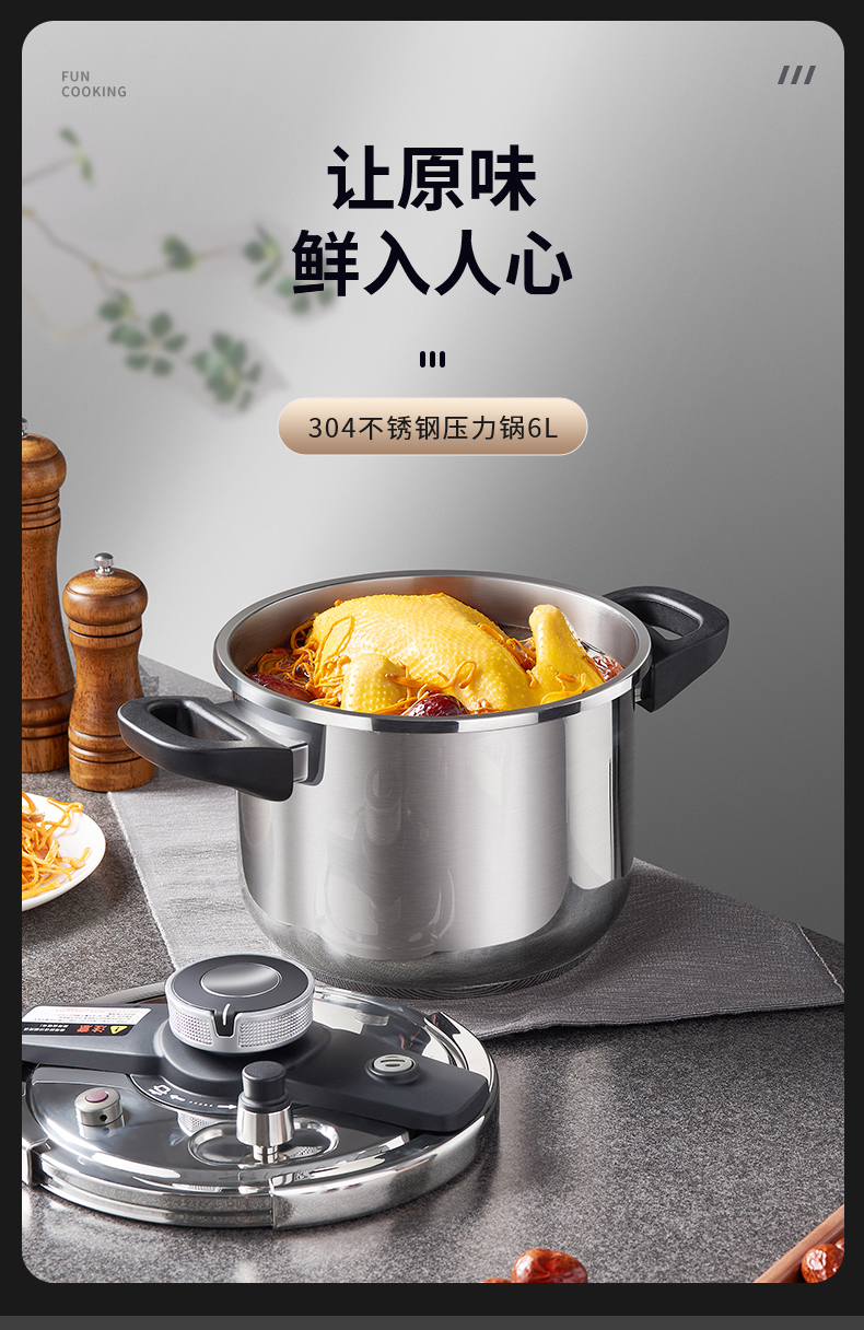 omuda/欧美达6升巴赫系列304不锈钢压力锅BHGY22